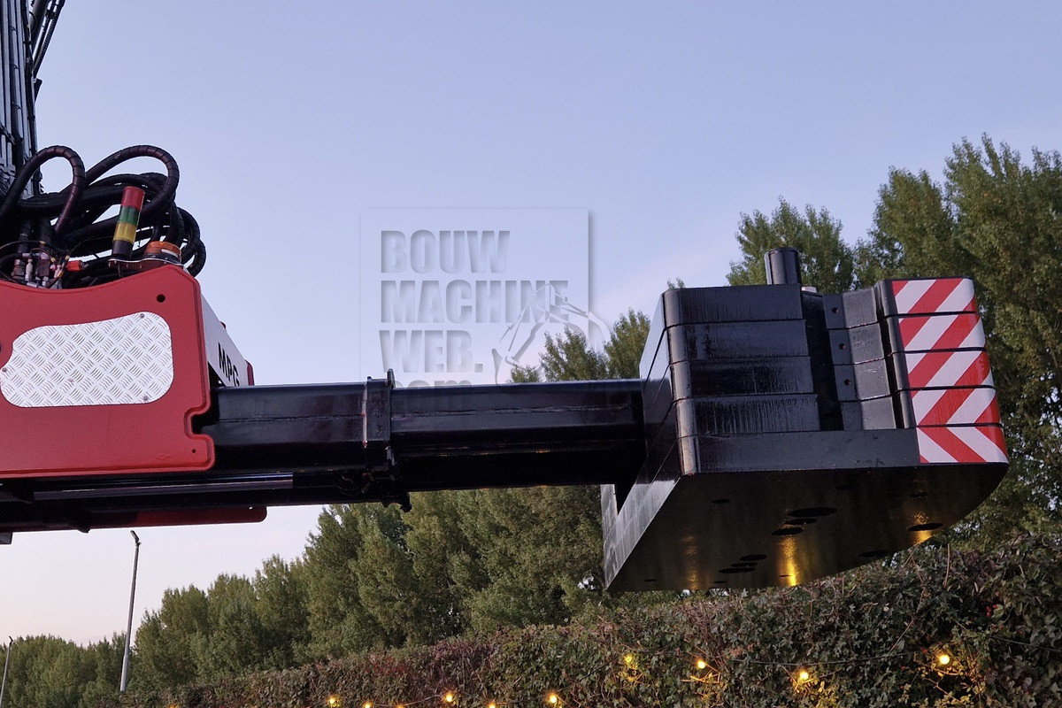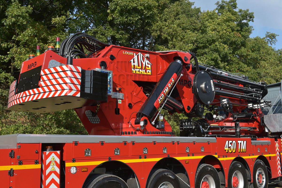 Het antwoord werd gevonden bij MPG in het Turkse Konya. Daar viel de keuze op de zwaarste ‘Knuckle Boom Crane’ van MPG, de 450.000 9+6. Een machine met 450 tonmeter liftvermogen en een bereik van maximaal 70 meter. Op 20 meter is de hijscapaciteit nog steeds 13,5 ton en op 33 meter is dat 6,5 ton. Indrukwekkende cijfers dus, maar daar moest een passende truck onder.