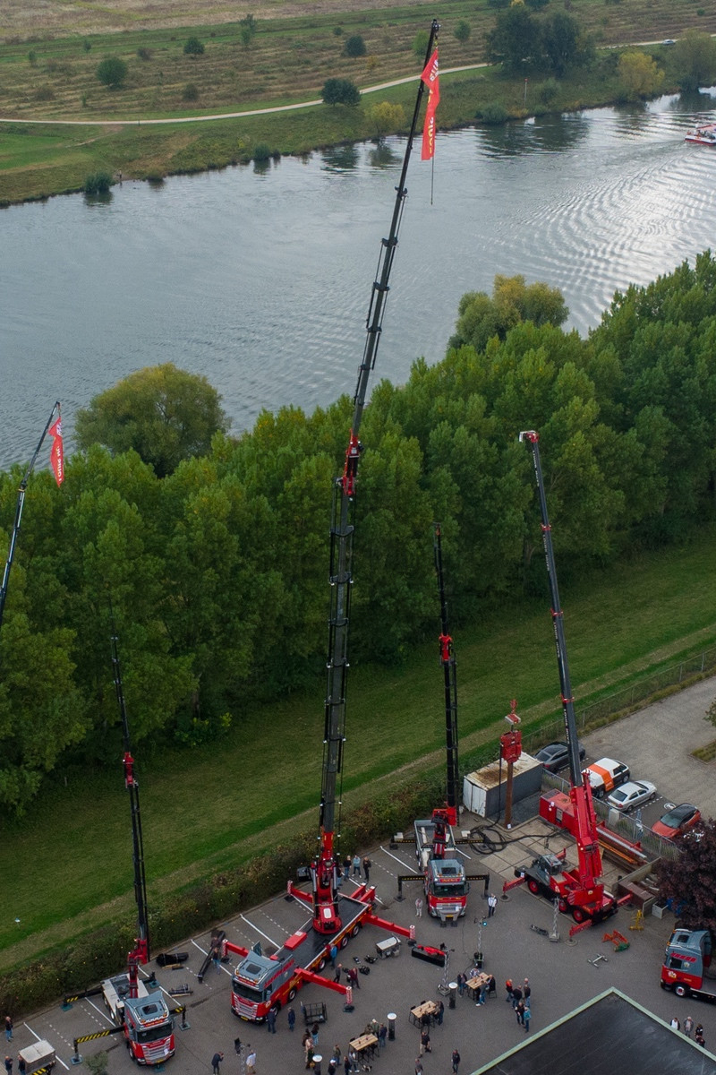Louis Huys vierde onlangs het zestig jarige jubileum van het bedrijf, waarbij de nieuwe Scania met MPG kraan het middelpunt vormde. De vloot van het bedrijf omvat 15 trucks, van trekkers met verschillende soorten diepladers tot zware autolaadkranen. Tot nu toe was de zwaarste autolaadkraan een 365 tonmeter. “Dat was toen de zwaarste autolaadkraan in Nederland, maar inmiddels zijn de ontwikkelingen verder en vroeg het werk om een nog zwaardere kraan”, aldus eigenaar Peter Huys.
