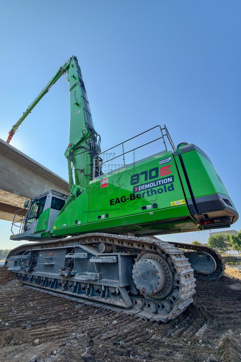 Het in 2015 opgerichte Duitse bedrijf EAG-Berthold is gespecialiseerd in grond- en sloopwerk en had al ervaring met het slopen van bruggen. In juni 2025 begon de sloopspecialist met de gecontroleerde sloop van de Carolabrug. Nadat het ingestorte deel van de brug was verwijderd, moest de rest gecontroleerd worden afgebroken. Draagkabels werden blootgelegd en vervolgens doorgesneden. EAG-Berthold vertrouwde voor deze veeleisende taak op de Sennebogen 870E Demolition.