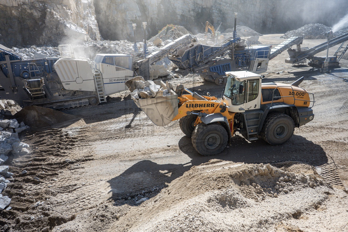 De L 580 XPower voert grof gesteente naar de breker, slaat het verwerkte materiaal op en laadt het eindproduct op vrachtwagens. Een Liebherr R 934 rupsgraafmachine met een hydraulische sloophamer, die grote stenen voorbreekt, wordt hierbij gebruikt. In stoffig, oneffen terrein bewijst de jubileummachine een krachtige en robuuste krachtpatser te zijn met een hoge verwerkingscapaciteit. "De XPower overtuigt met zijn productiviteit, lage dieselverbruik en gebruiksgemak. Onze machinisten zijn oprecht enthousiast en gebruiken hem graag om hun dagelijkse taken efficiënt uit te voeren", bevestigt Gruber.