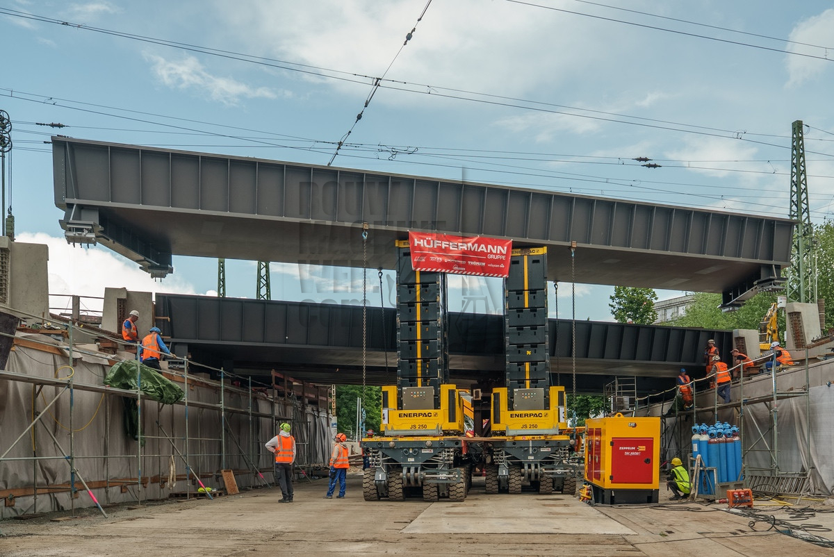 In het hart van de Hanzestad realiseren Hüffermann Krandienst GmbH, Eisele GmbH en Thömen Spedition GmbH & Co. KG een spectaculair infrastructuurproject: binnen enkele dagen installeren zij bij Ferdinandstor negen nieuwe stalen bruggen voor de langeafstands- en regionale spoorlijn, elk met een gewicht van circa 120 ton.