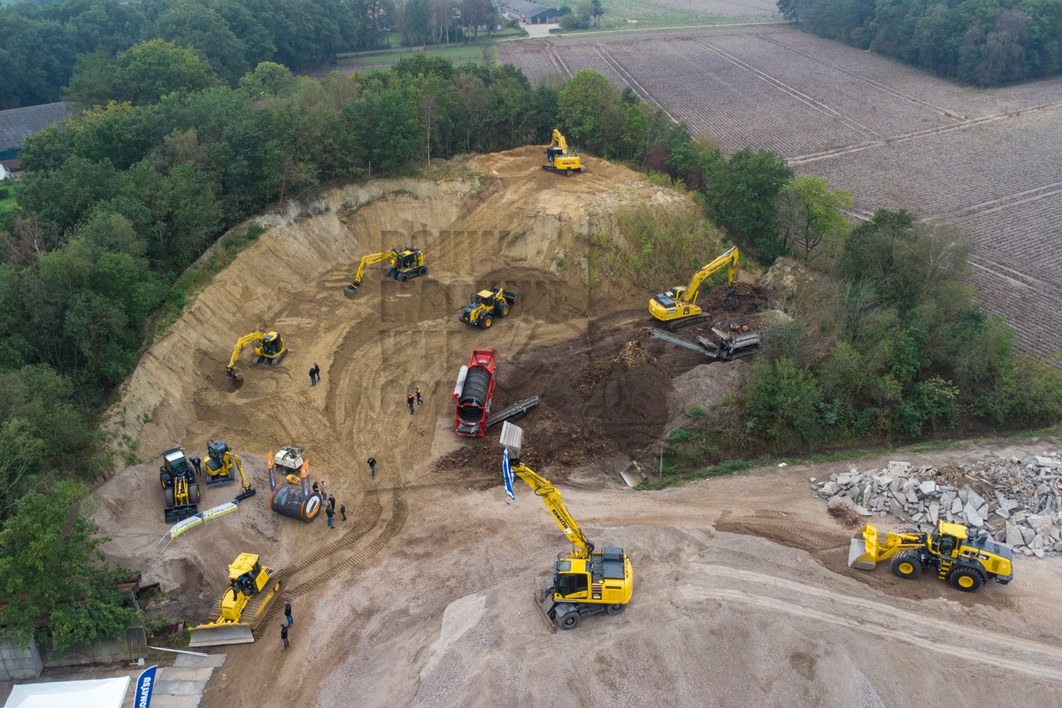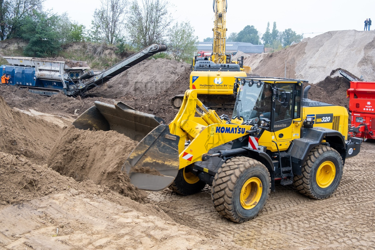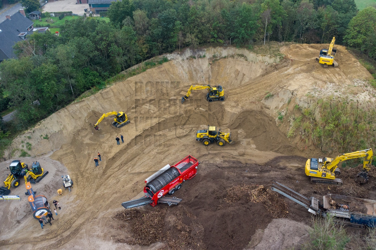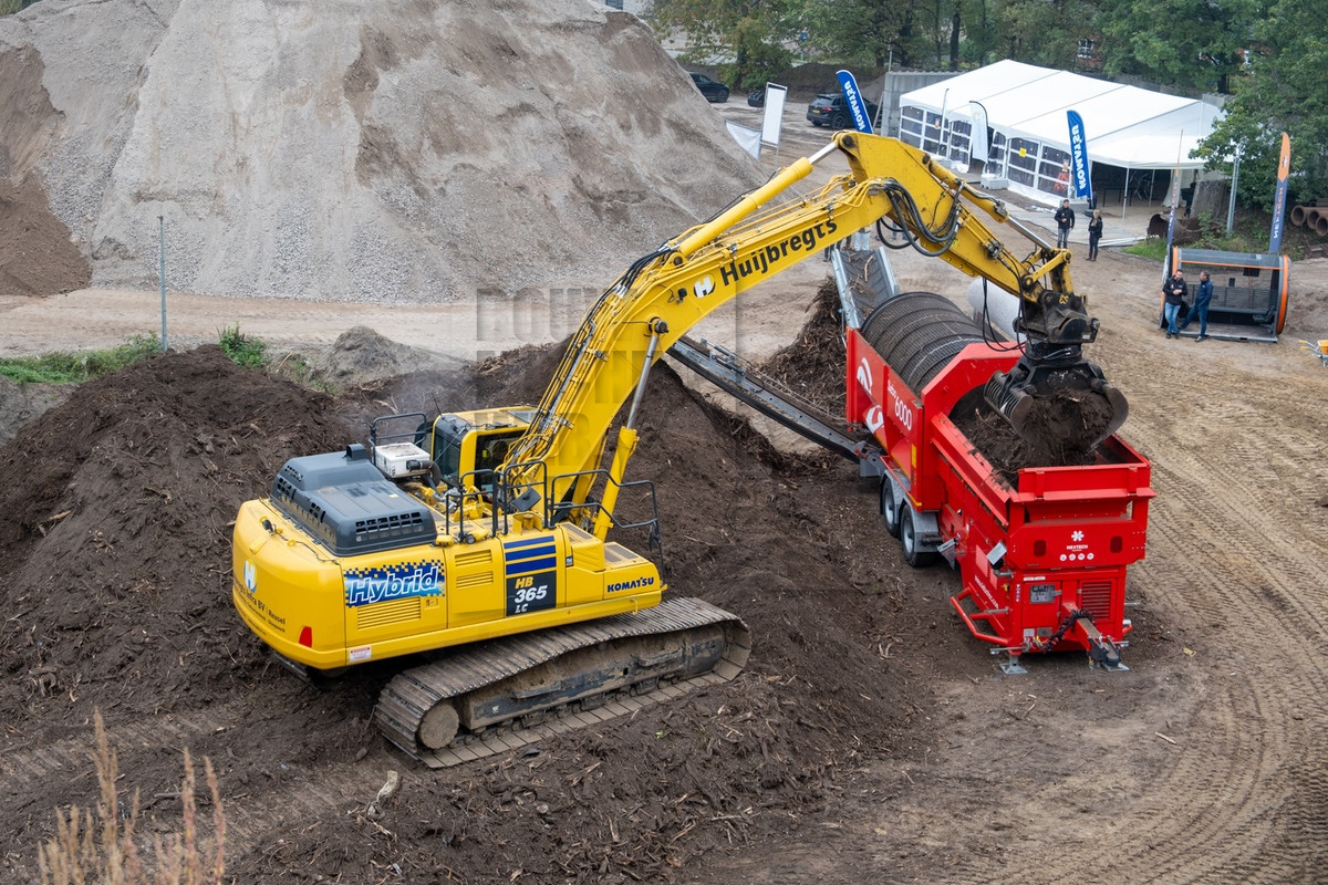 Naast de Komatsu grondverzetmachines waren er ook de Siebotec Siebo 6000E trommelzeef en de Linder Urraco 95DK shredder aanwezig.