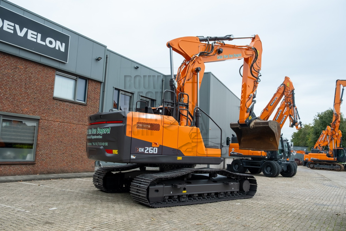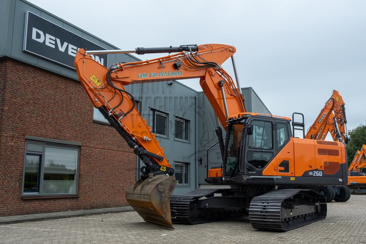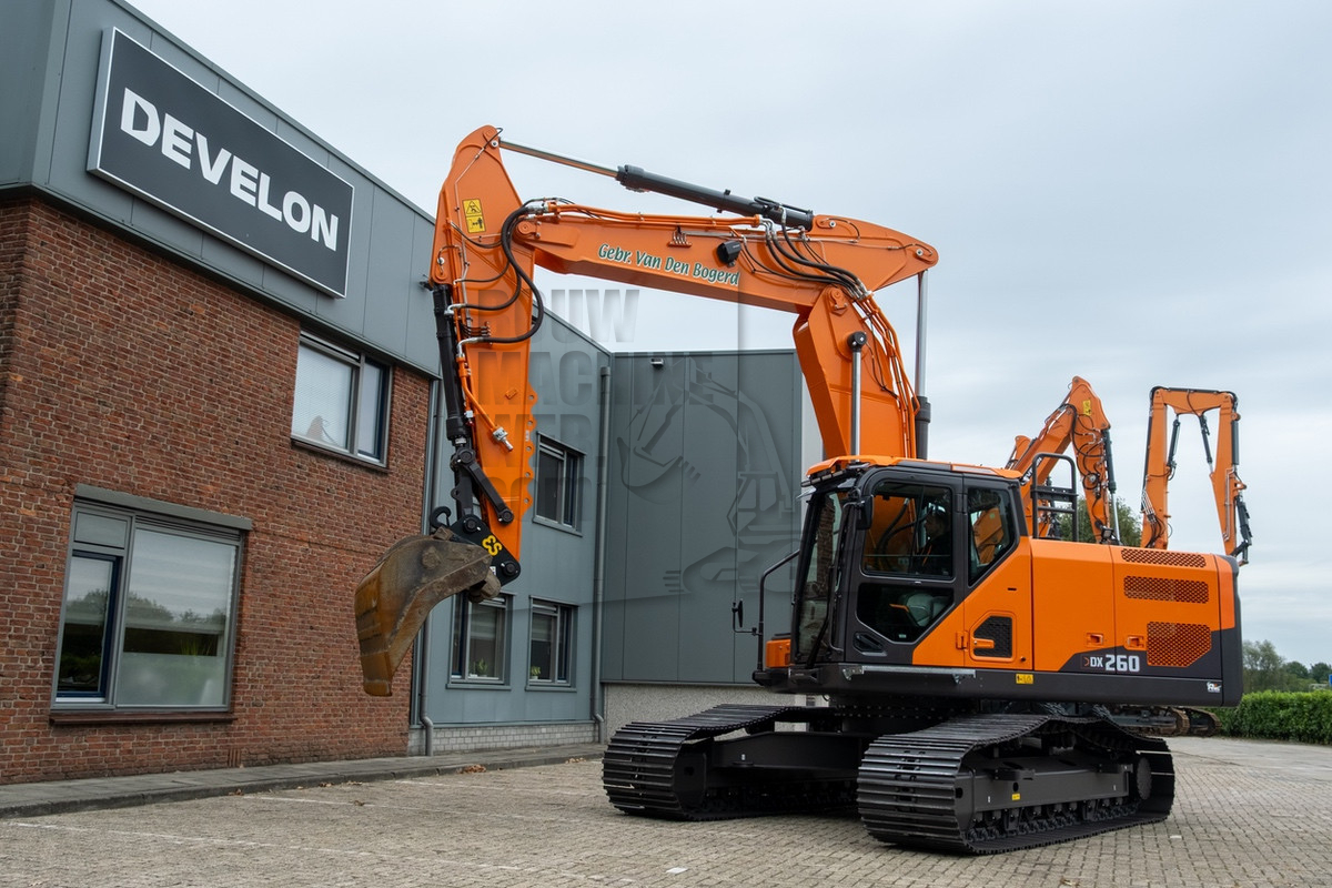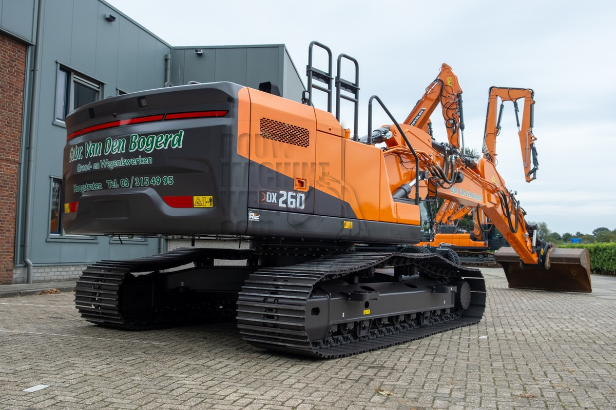 R&L Machinery in het Brabantse Heerle (Gemeente Roosendaal) leverde begin oktober de eerste DX260LC-9 af in de Benelux. Voor de Belgische klant Gebr. Van den Bogerd Grond- en wegenwerken uit Hoogstraten werd de machine uitgerust met treeplank, hijslat aan de binnenzijde van de lepelsteel en een Eurosteel CW40 hydraulische snelwissel. Ook werd het design van de machine iets aangepast waardoor de machine stoerder oogt.