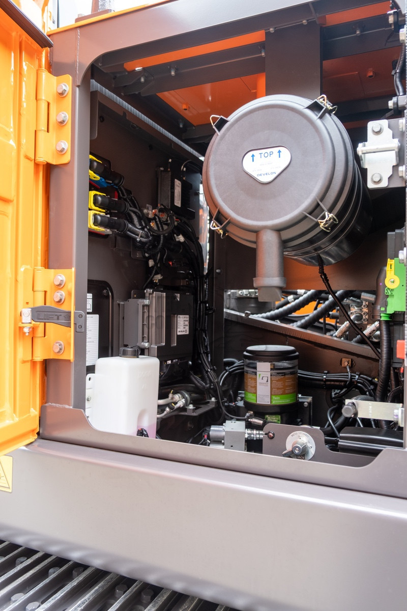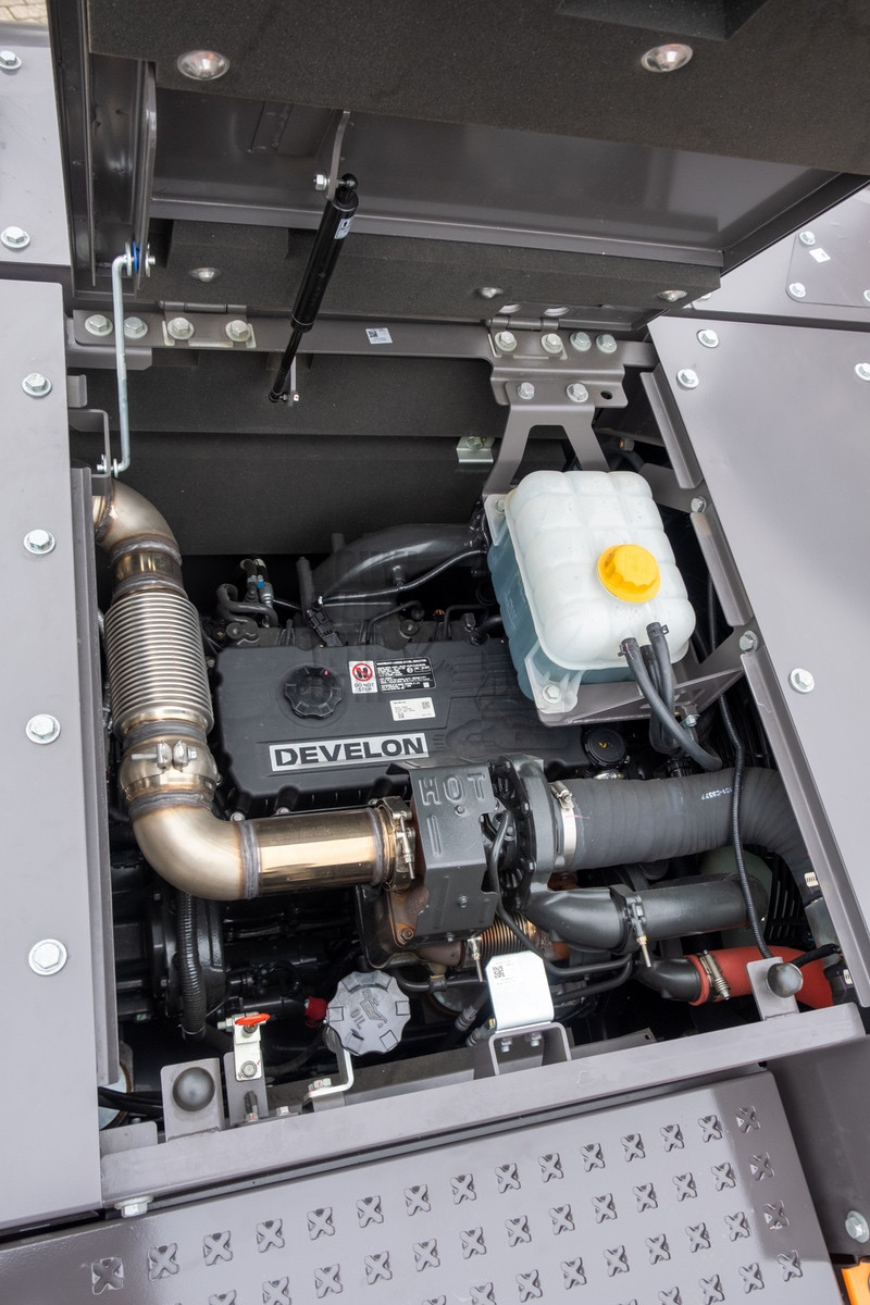 Onderhuids zijn de machines grondig aangepakt, het eerste wat opvalt is een viercilinder motor en dat terwijl Develon altijd standvastig een zescilinder monteerde. De keuze voor een viercilinder motor zien we tegenwoordig bij steeds meer fabrikanten in deze klasse, want minder kan ook meer betekenen. De 5 liter viercilinder DX05V met dubbele turbo is van eigen makelij en levert 141 kW (189 pk) bij 1.700 omw/min in de 230, bij de 260 is dit 171 kW (229 pk) bij 1.900 omw/min. In beide machines levert de motor al bij 1.400 omw/min een koppel van circa 955 Nm.