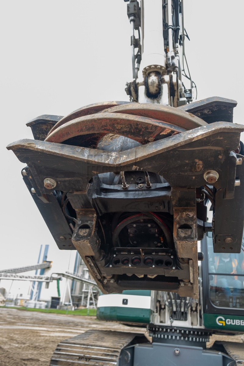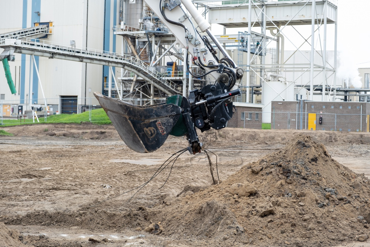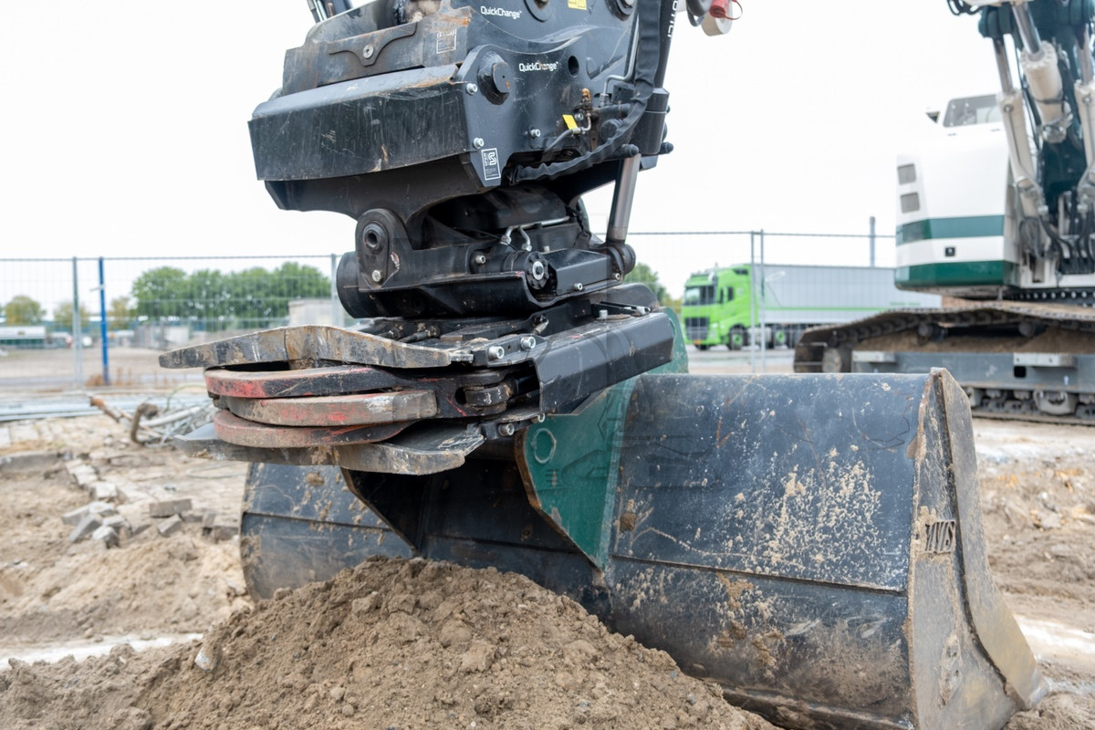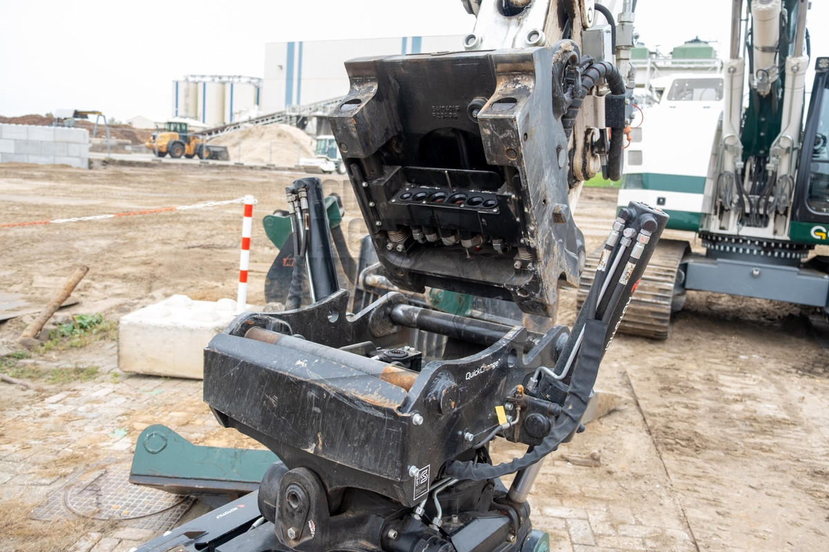Tevens is er ook een QC70-55 snelwissel aan de onderzijde van het draaikantelstuk gemonteerd, zodat er diverse hydraulische uitrustingsstukken zoals bijvoorbeeld een sorteergrijper zonder draaikrans gekoppeld kunnen worden. Ook is het draaikantelstuk voorzien van een geïntegreerde gripper. Inmiddels draait machinist-Kees-Jan Verouden al enkele maanden met de machine en is enthousiast over Rototilt: “Met het draaikantelstuk kan ik moeiteloos in ieder hoekje komen en heb ik hem niet nodig, zoals bij het laden van vrachtwagens, dan koppel ik hem eenvoudig af. Ik verbaasde me onlangs toen ik de sloophamer eraan moest hangen, deze is voorzien van een kopplaat van een ander merk snelwisselsysteem en deze paste moeiteloos eraan, dit alles dankzij de Open-S-standaard”.