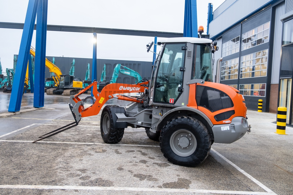 Direct bij de ingang werd de bezoeker al bekend gemaakt met het nieuwste product, de Weycor wielladers die sinds dit jaar deel uitmaken van het leveringsprogramma van Kemp.