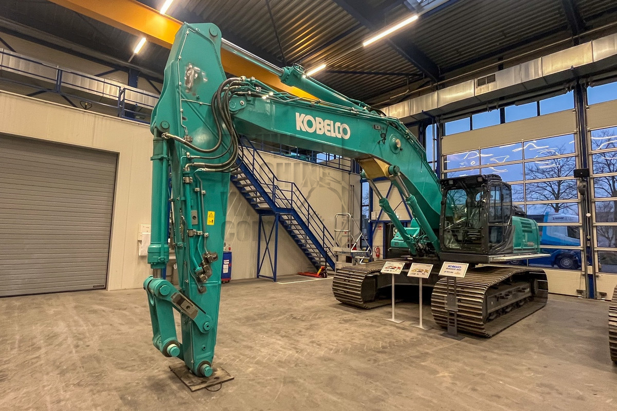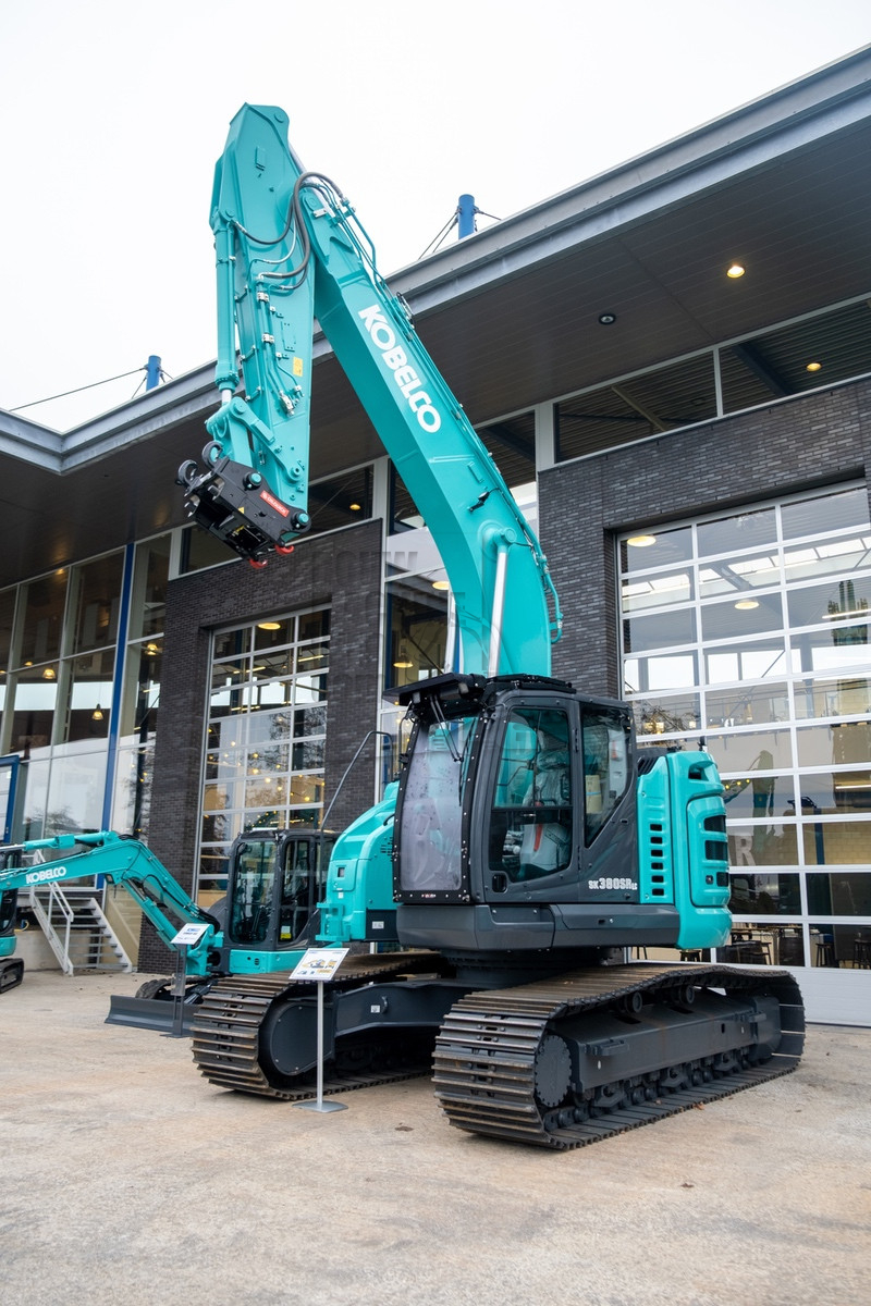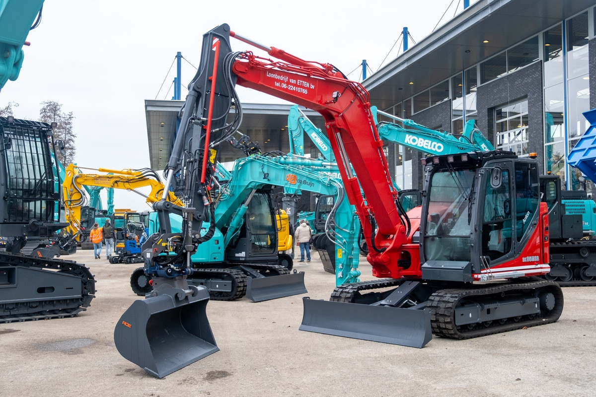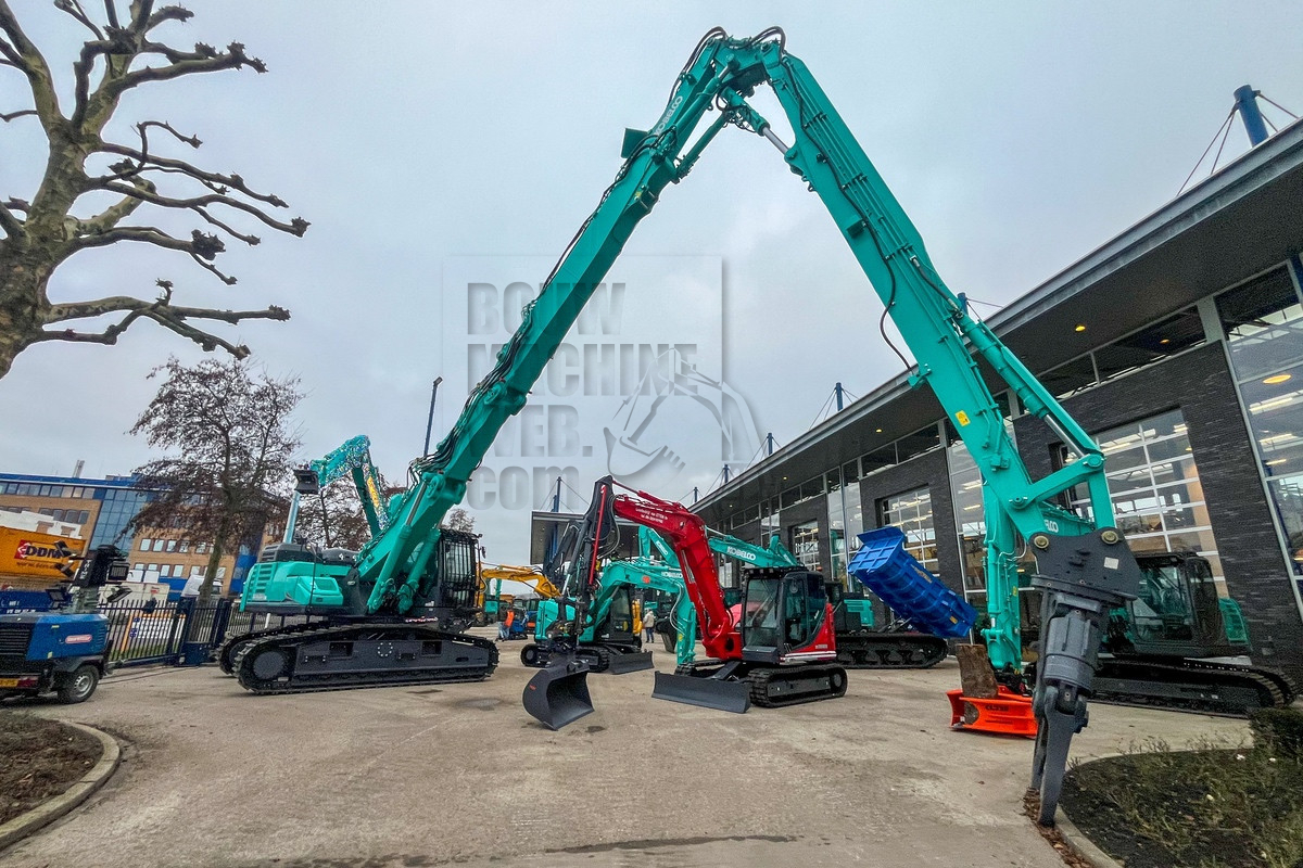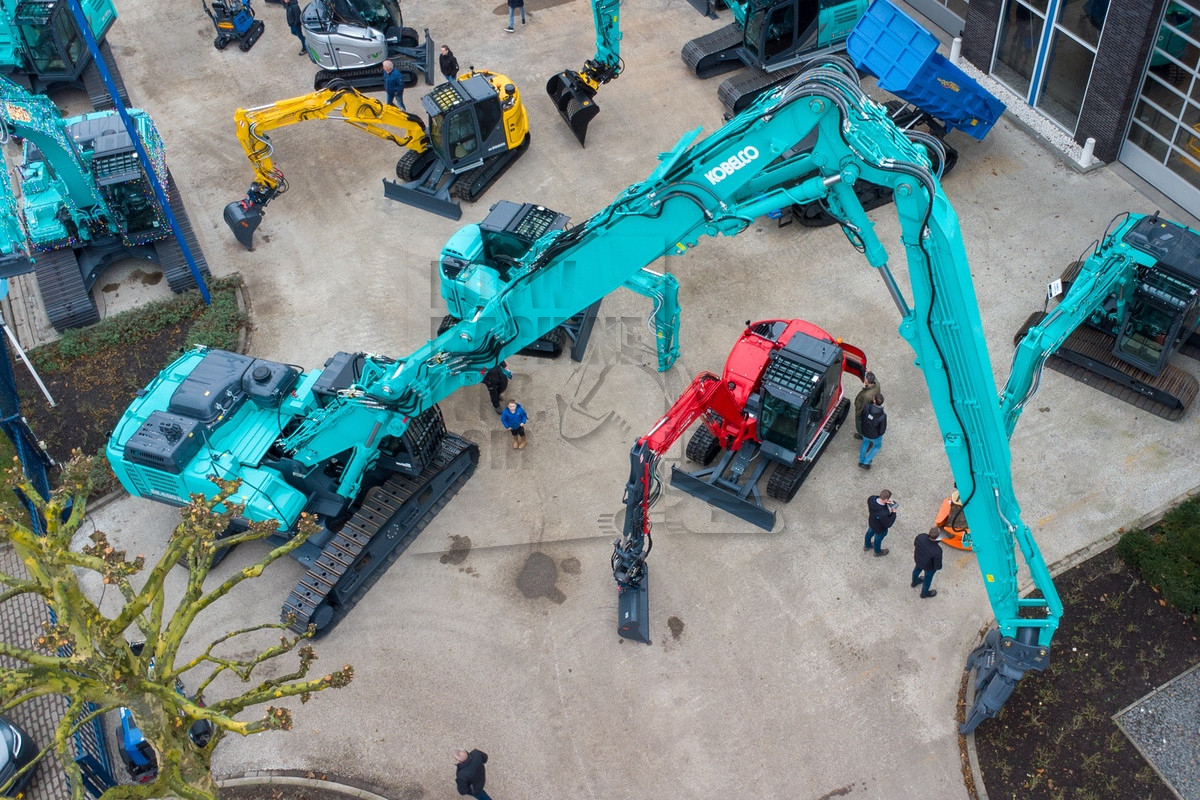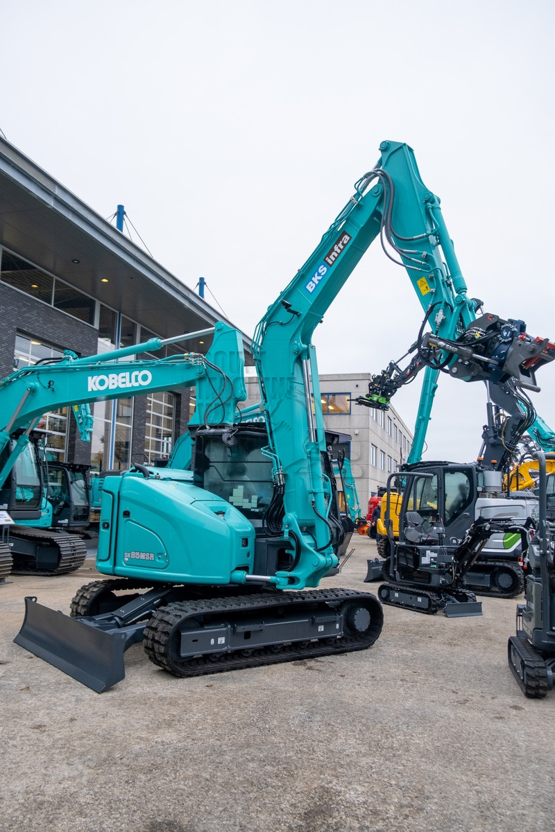 Grootste Kobelco aandachttrekker was de SK400 met lange sloopgiek en telescopeerbare onderwagen, geheel origineel af fabriek.