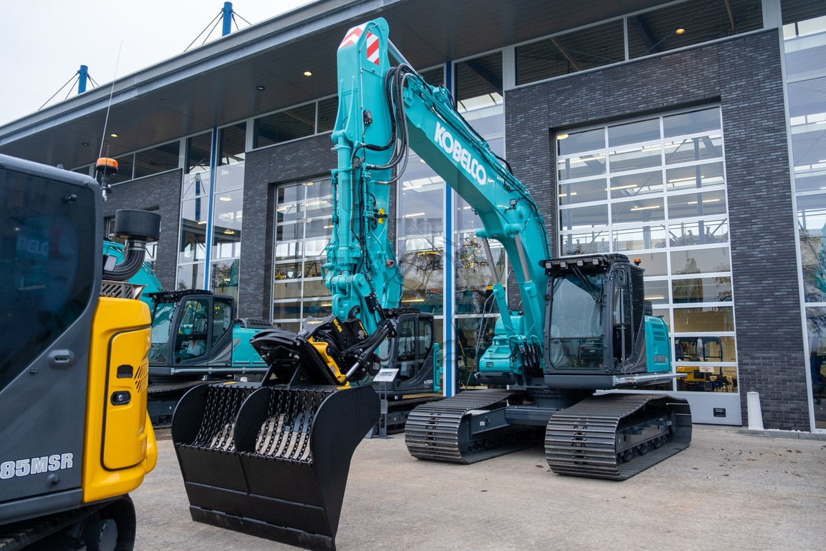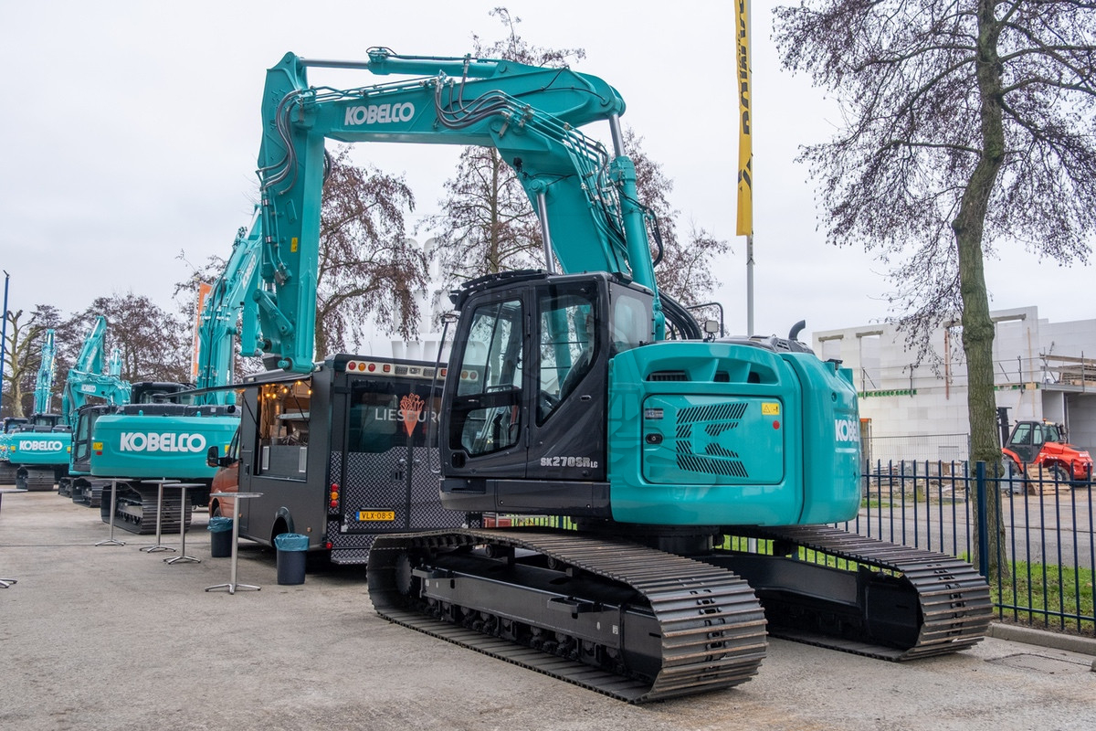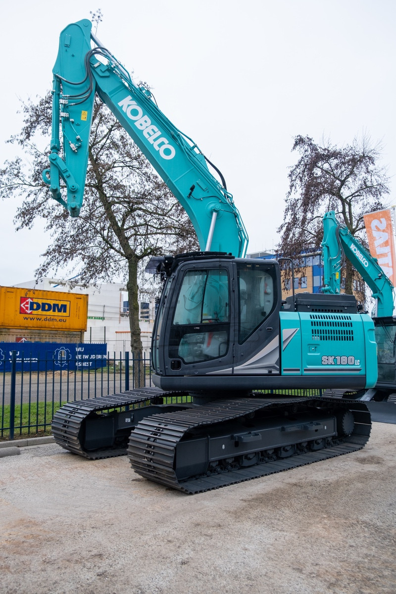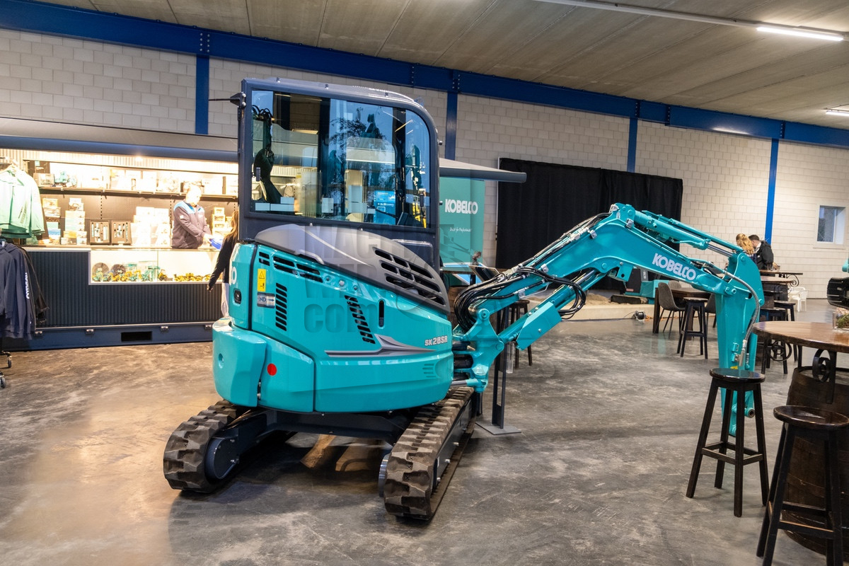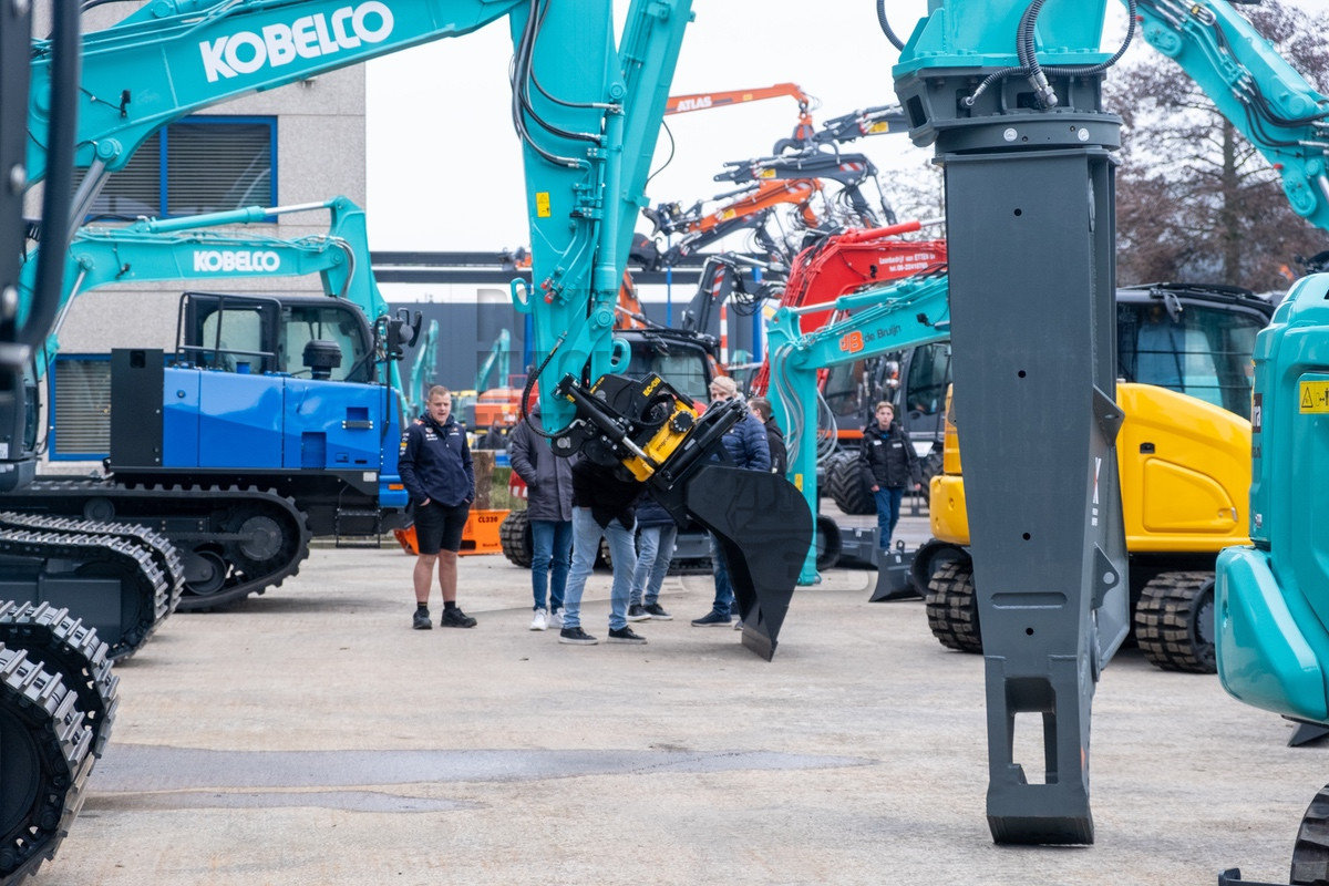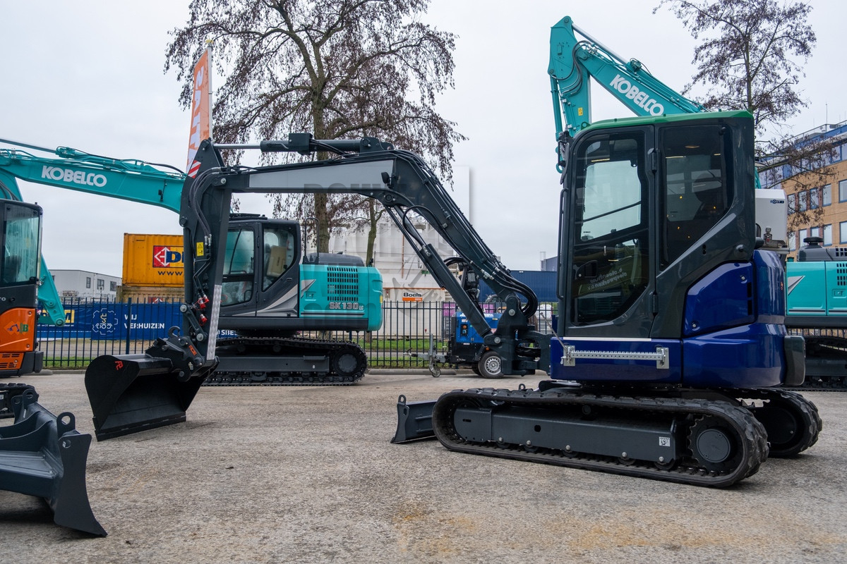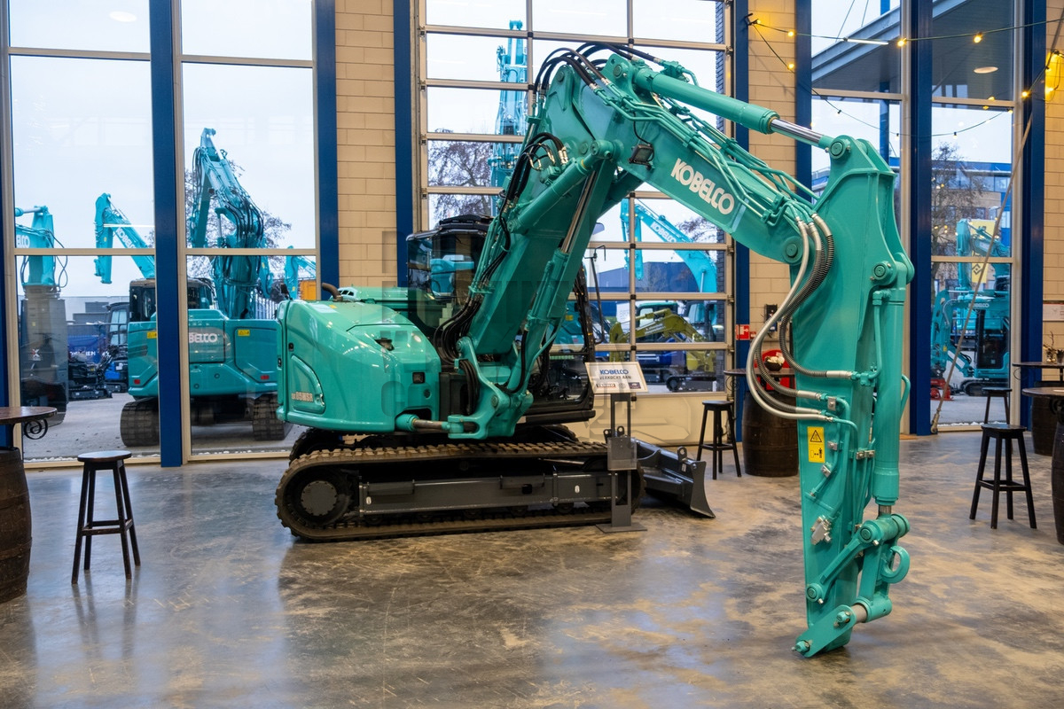 Grootste Kobelco aandachttrekker was de SK400 met lange sloopgiek en telescopeerbare onderwagen, geheel origineel af fabriek.