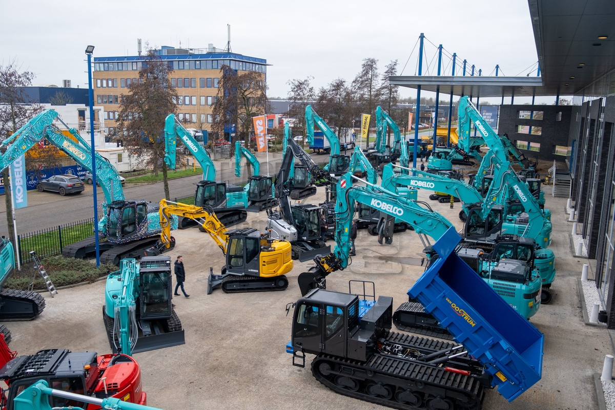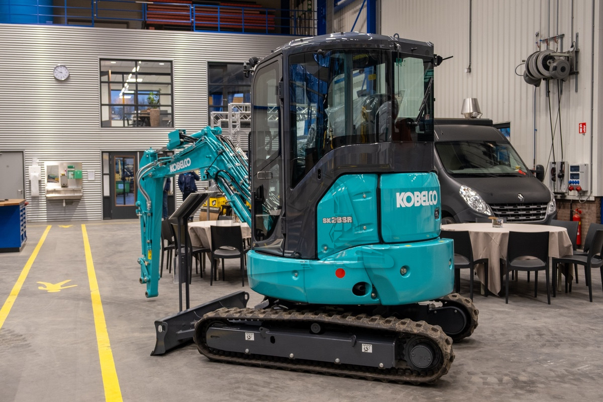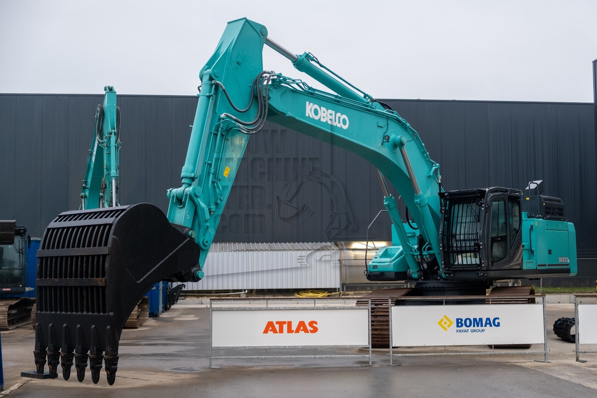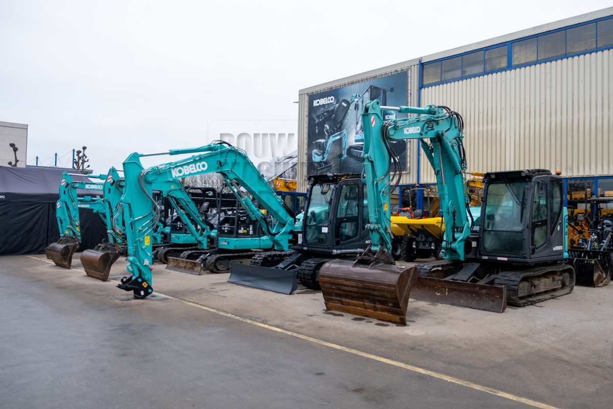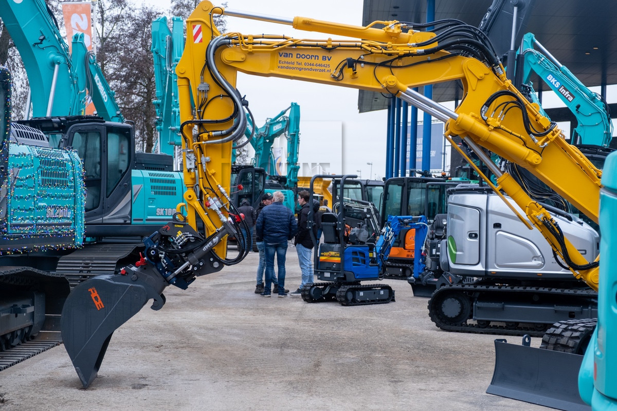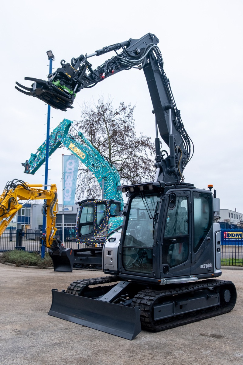 Grootste Kobelco aandachttrekker was de SK400 met lange sloopgiek en telescopeerbare onderwagen, geheel origineel af fabriek.