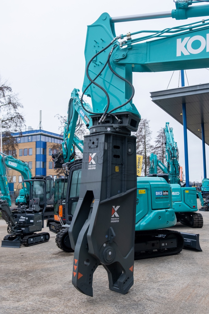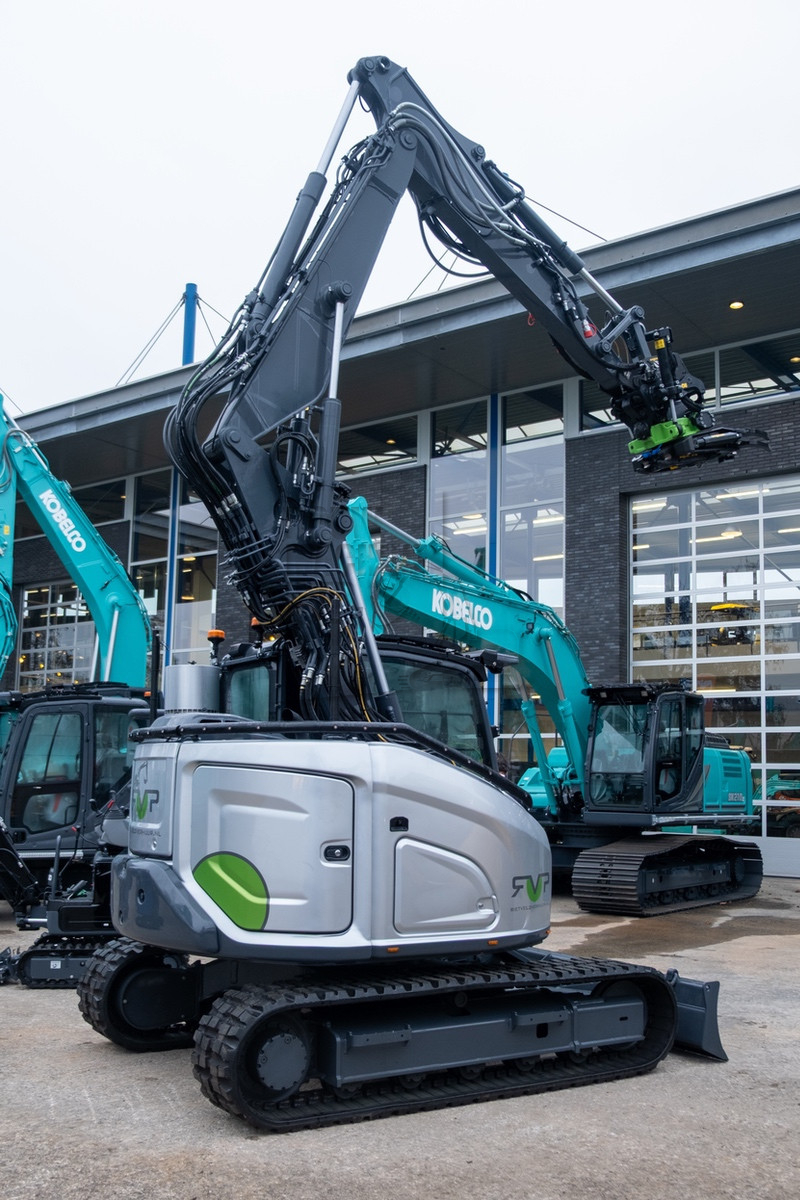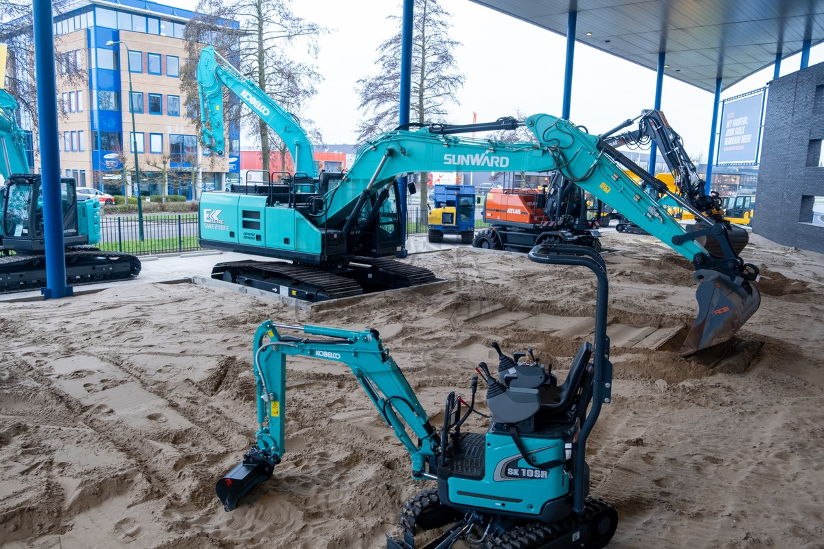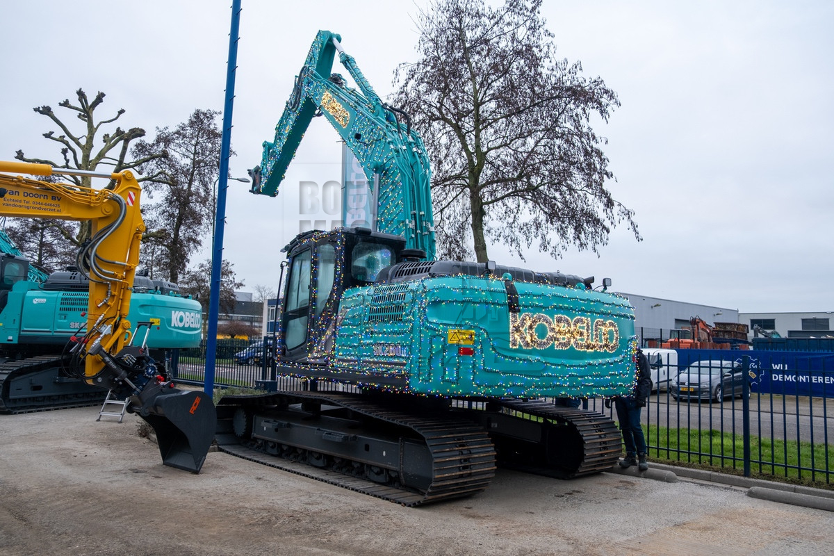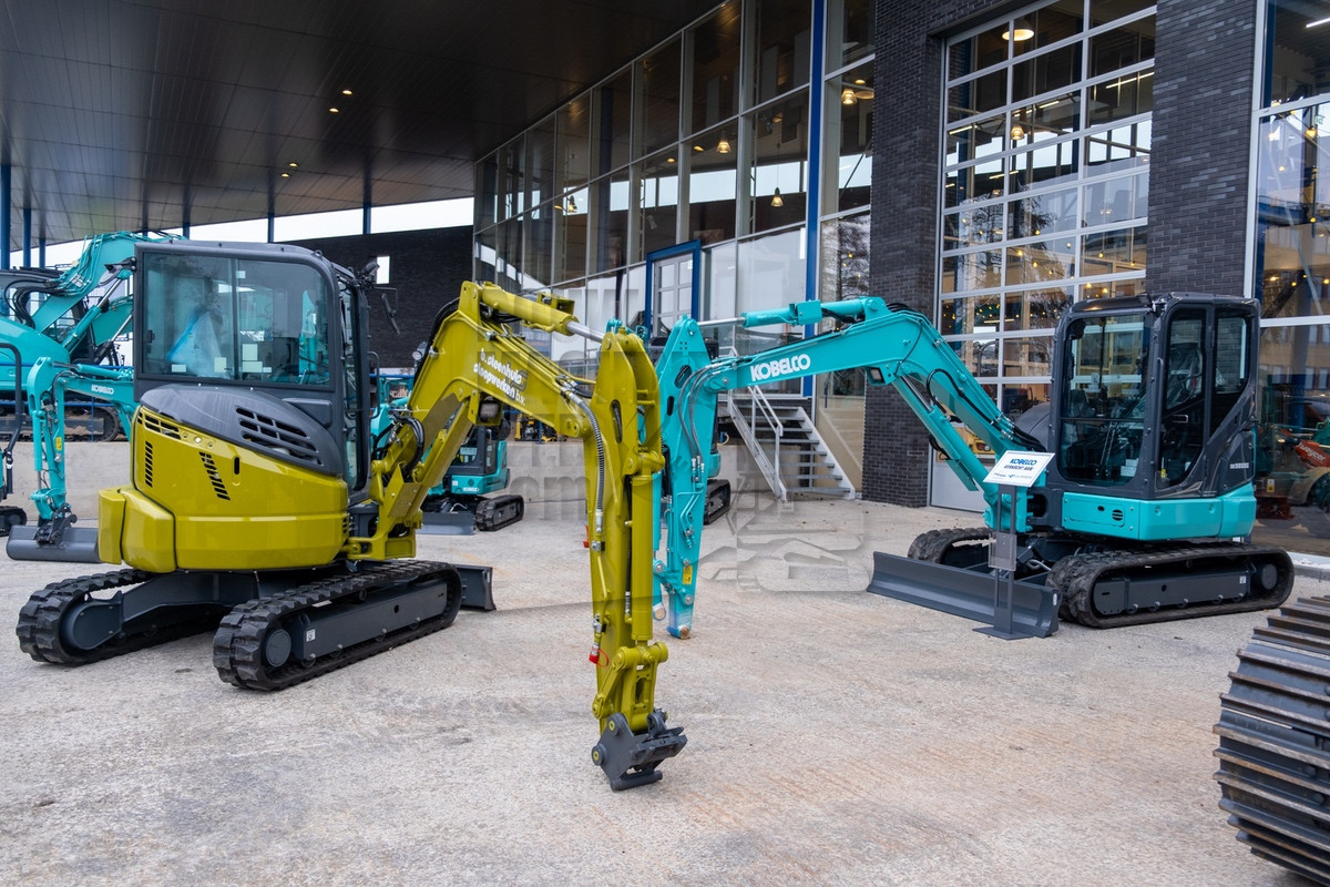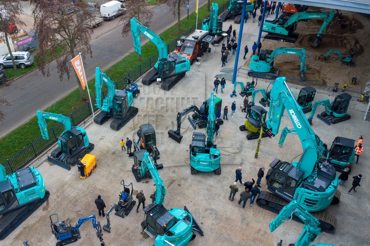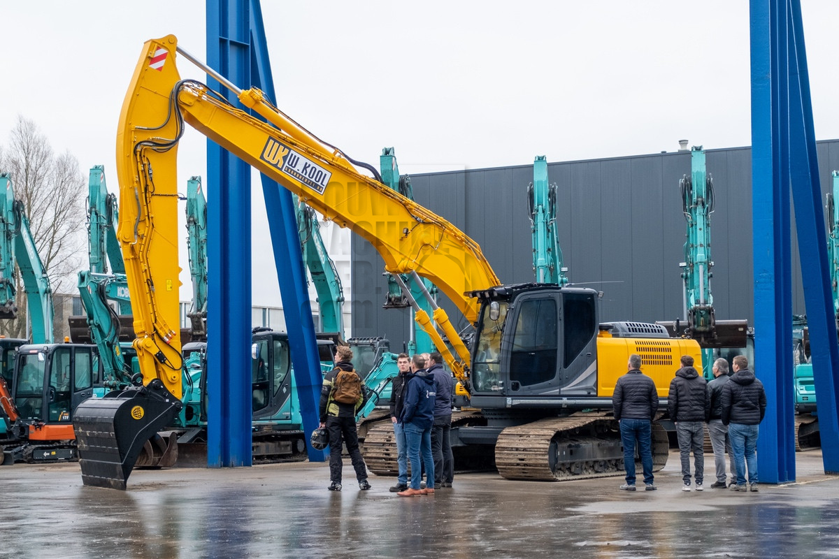Grootste Kobelco aandachttrekker was de SK400 met lange sloopgiek en telescopeerbare onderwagen, geheel origineel af fabriek.