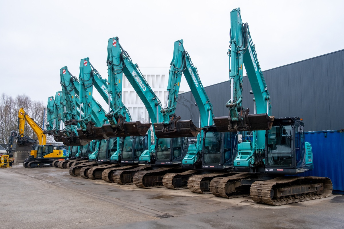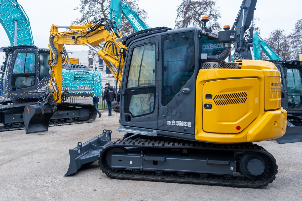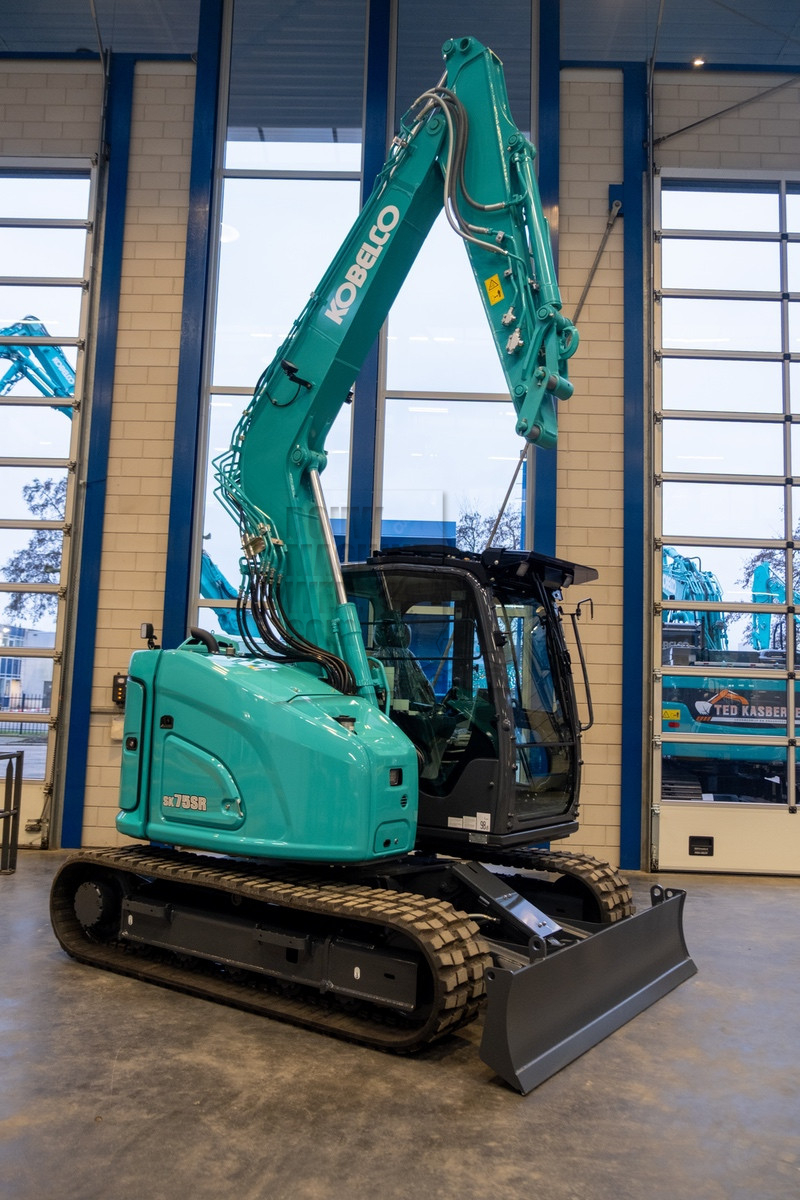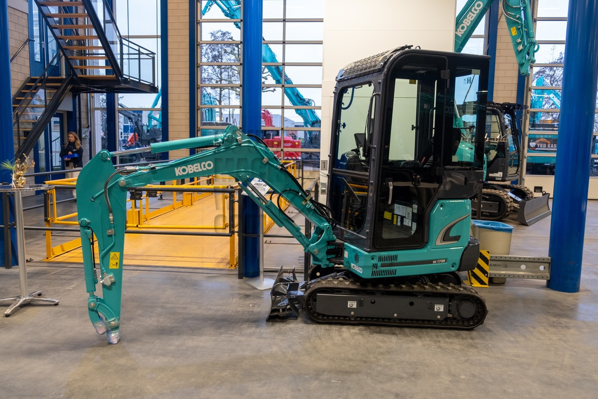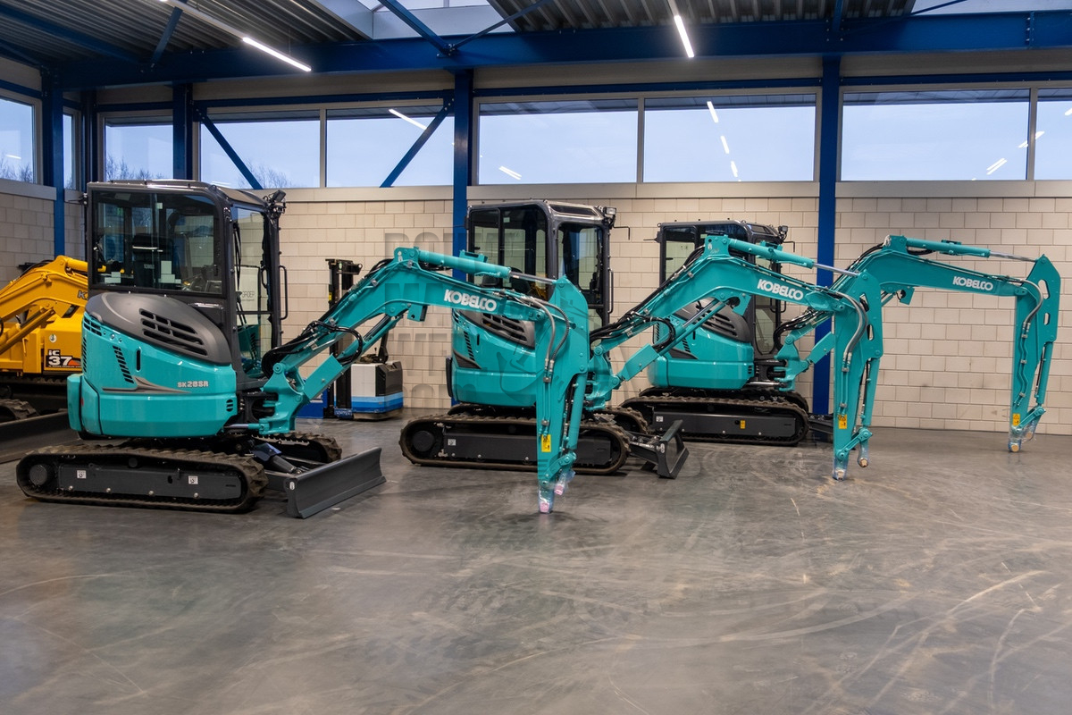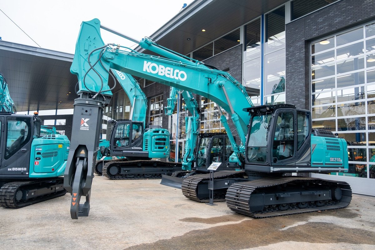 Grootste Kobelco aandachttrekker was de SK400 met lange sloopgiek en telescopeerbare onderwagen, geheel origineel af fabriek.