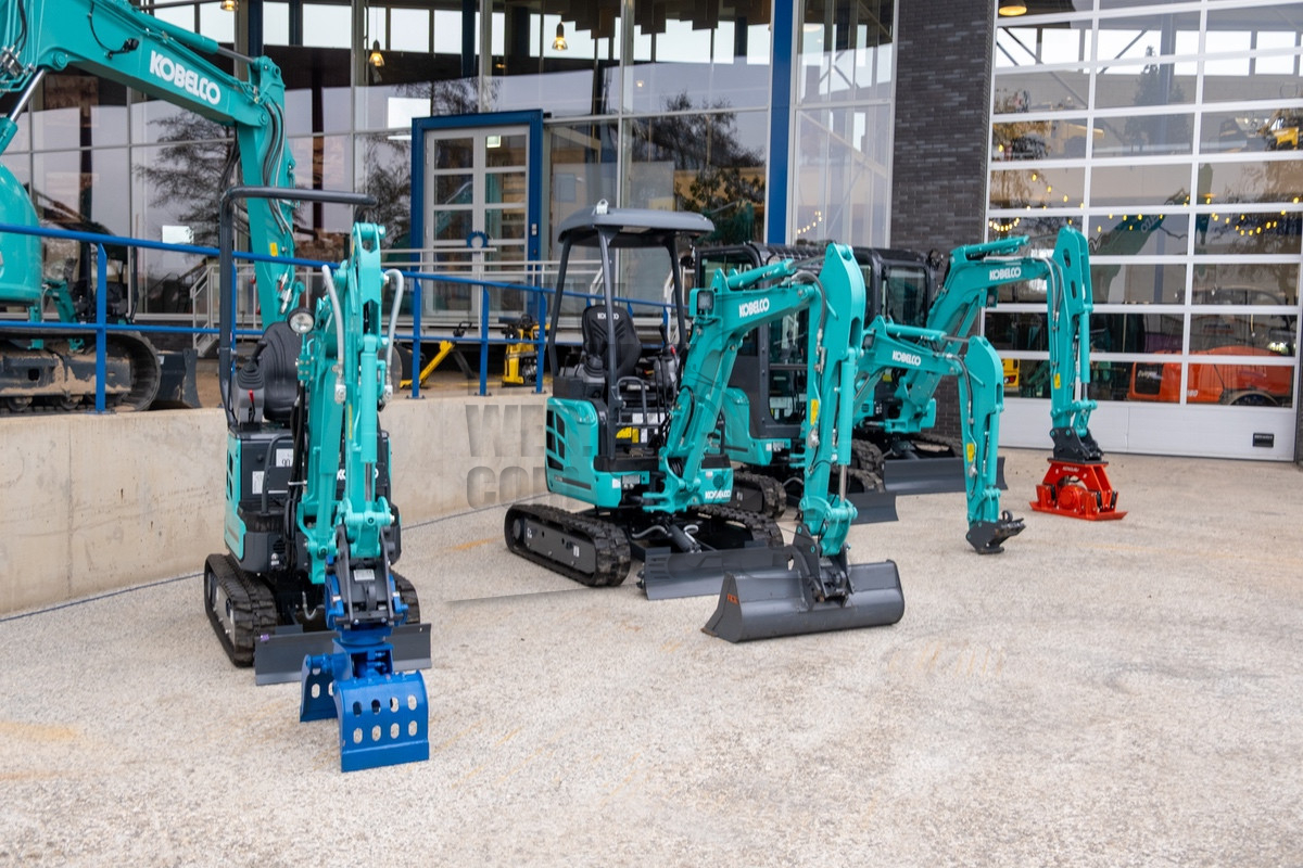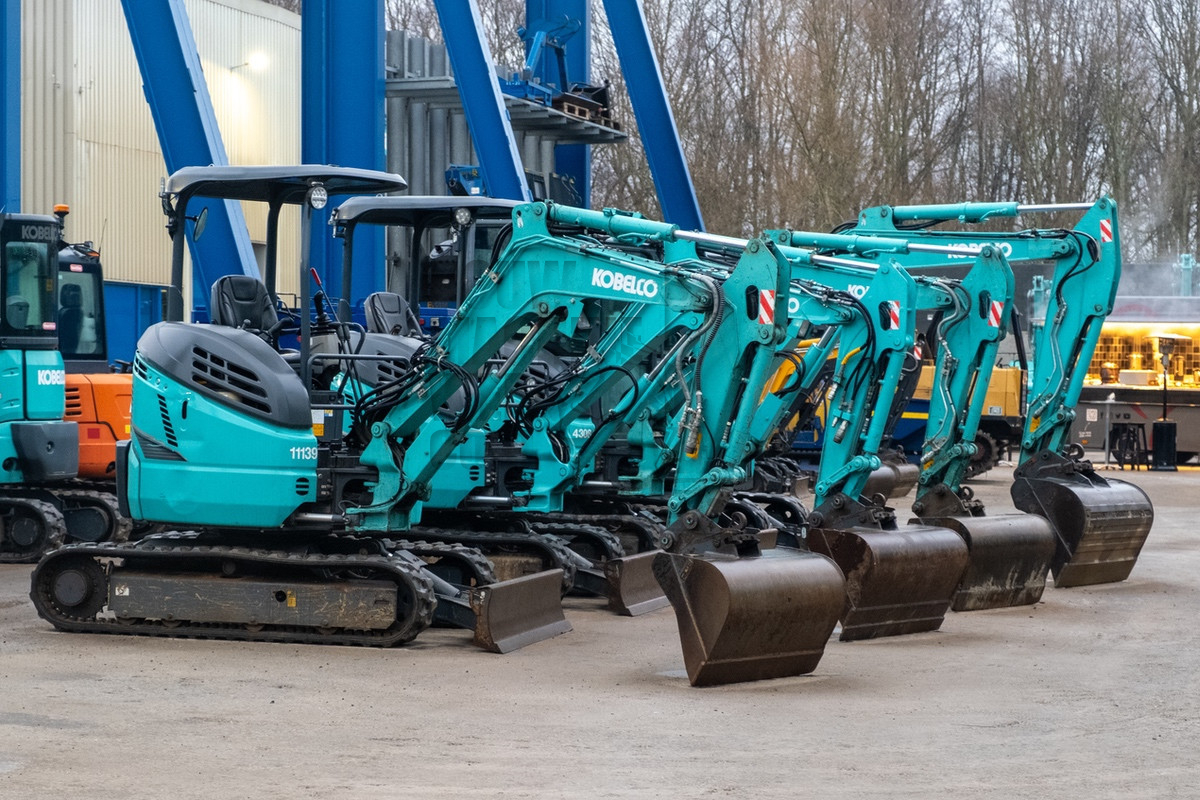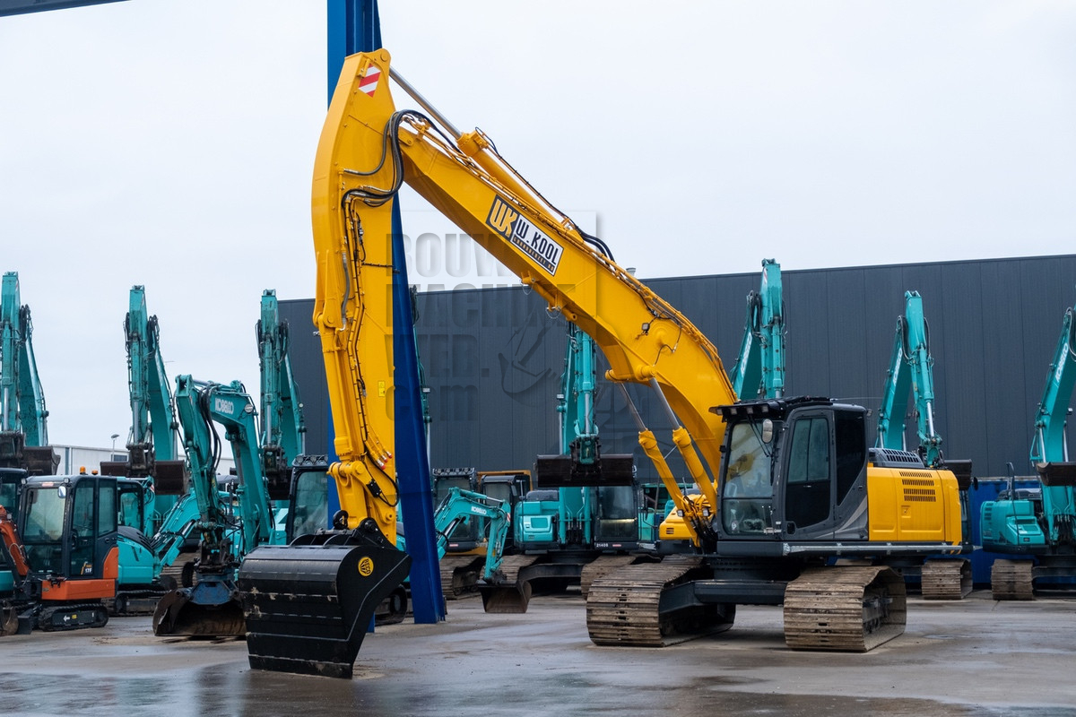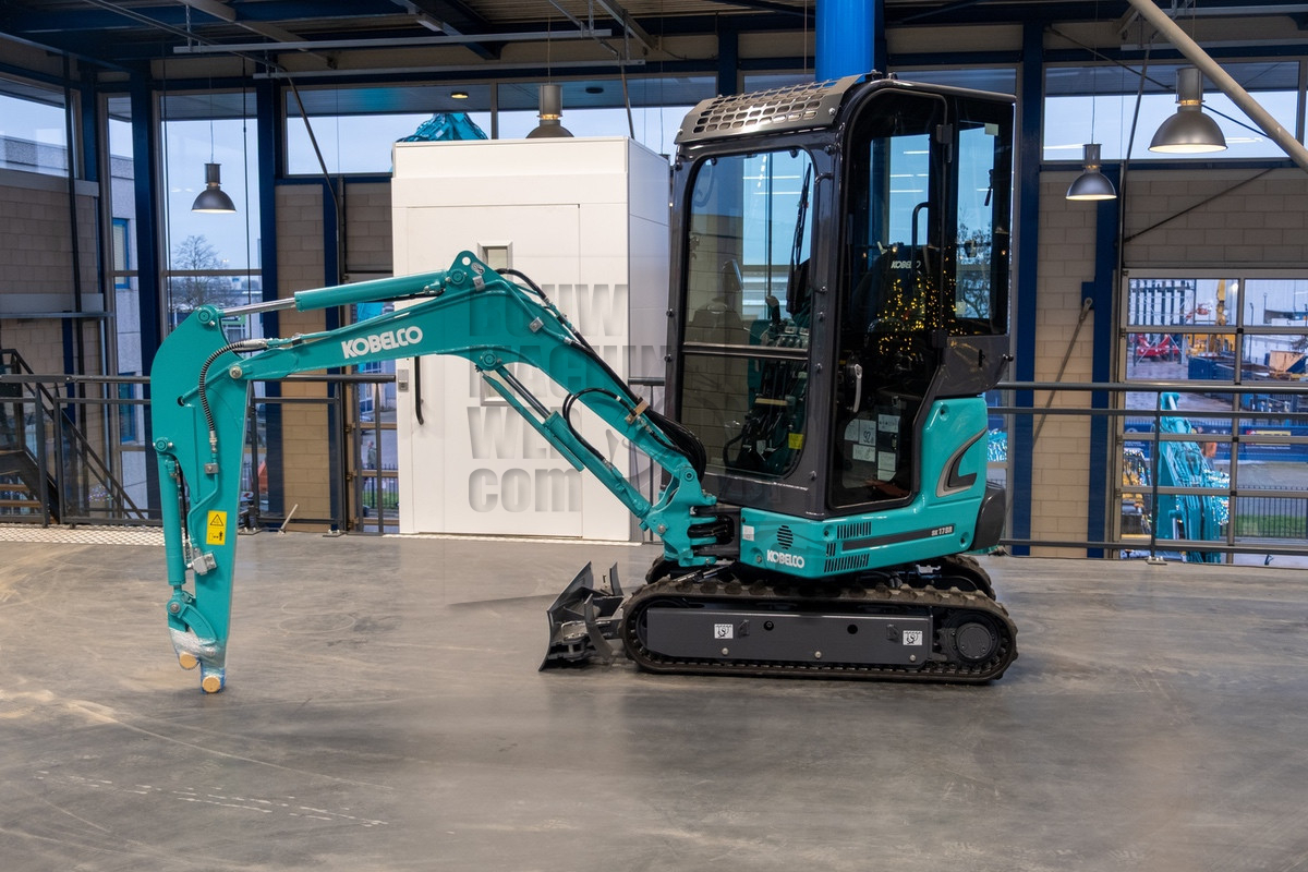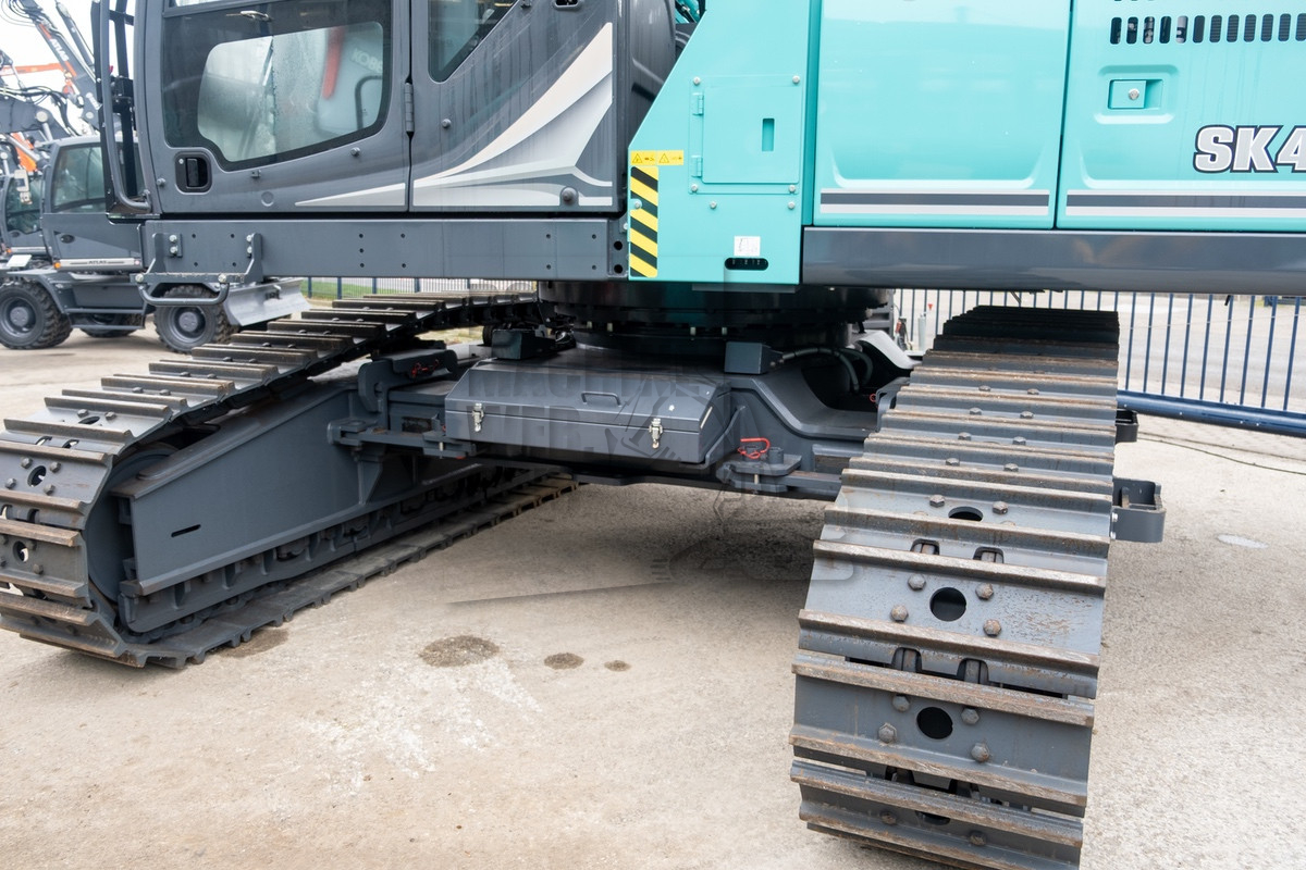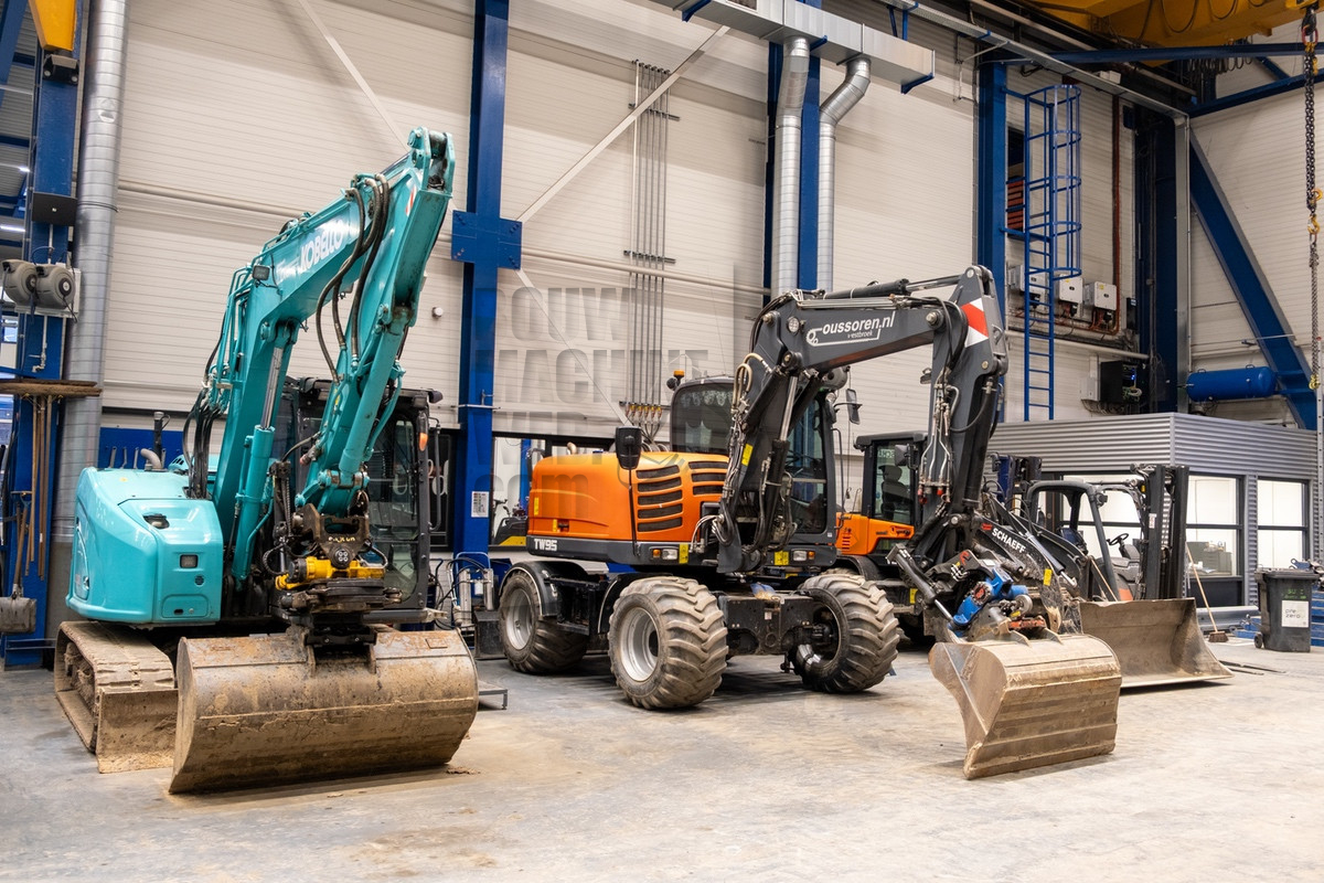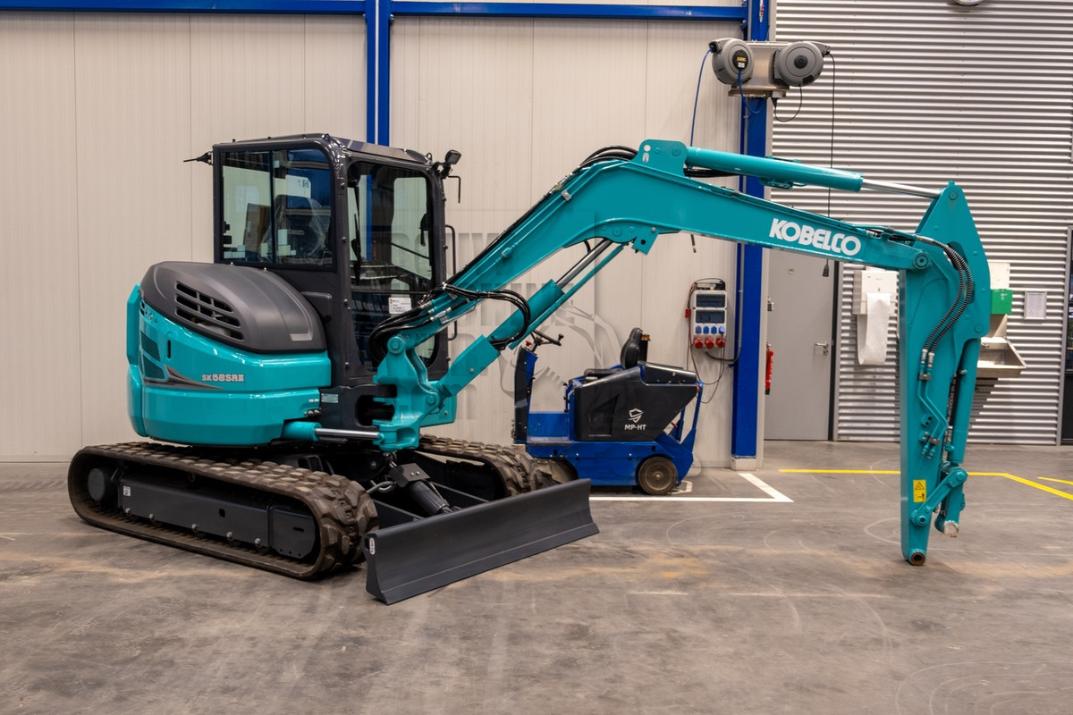 Grootste Kobelco aandachttrekker was de SK400 met lange sloopgiek en telescopeerbare onderwagen, geheel origineel af fabriek.