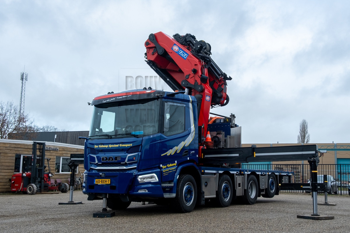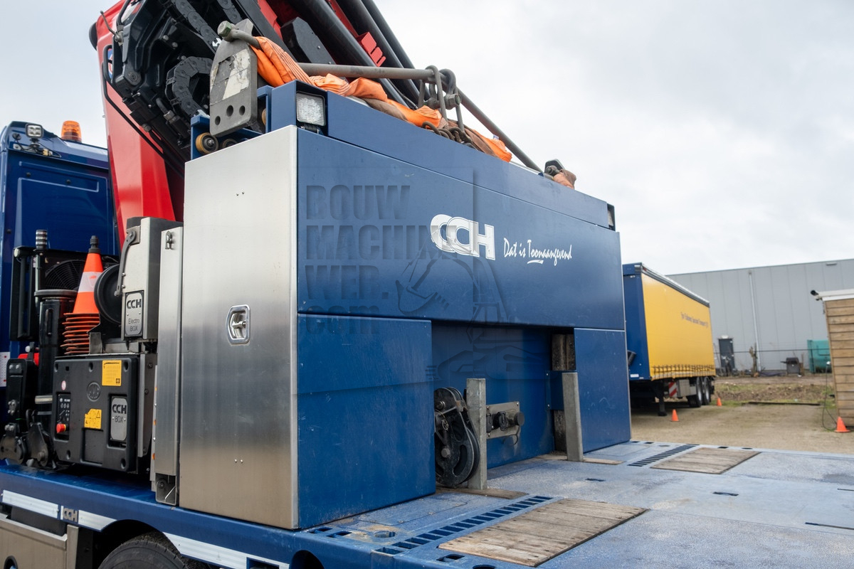 De DAF is door CCH in Halsteren in opdracht van JTST tot in de details speciaal opgebouwd. CCH monteerde er een 95 tonmeter HMF 9520-OK6 autolaadkraan met een FJ2000-K6 jib op. De kraan is voorzien van zes hydraulische uitschuiven op de kraan zelf, zes hydraulische uitschuiven op de jib en nog eens twee mechanische op de jib. Hierdoor ontstaat er een maximaal horizontaal bereik van 33,5 meter en 37 meter verticaal. Ook beschikt de kraan over ene manbak, waardoor hij als hoogwerker kan worden ingezet. Door een vijfde steunpoot aan de voorzijde kan er ook nog over de lage XD-cabine heen gewerkt worden. Doormiddel van een afneembaar accupakket kan deze krachtpatser ook elektrisch aangedreven worden.