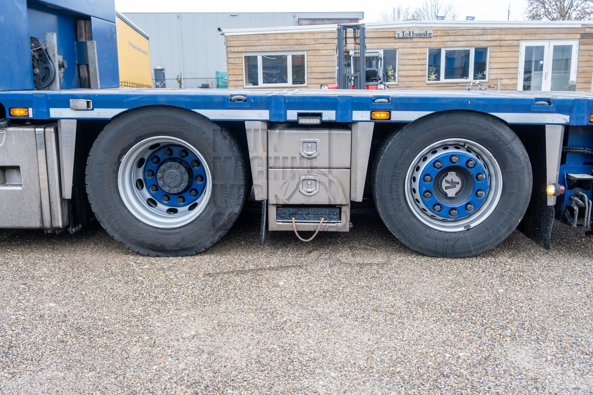 Naast de XD 8x2WSG heeft Jos Tolkamp Speciaal Transport (JTST) ook nog een XF 6x2WSG trekker met autolaadkraan in gebruik. Ook hierbij verplaatste Veldhuizen Trucks de sleepas waardoor het GVW steeg van 28 naar 30,5 ton. Deze asverplaatsingen biedt Veldhuizen Trucks ook aan voor 8x4 en 10x4-chassis.