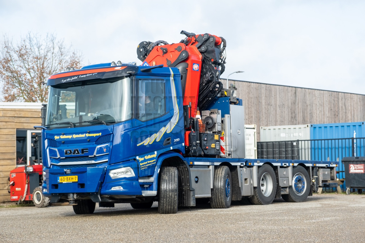 Sinds enige tijd heeft Jos Tolkamp Speciaal Transport uit Aalten een door Veldhuizen Trucks aangepaste DAF XD 8x2WSG in gebruik. Deze truck is voorzien van een krachtige HMF 95 tonmeter kraan.