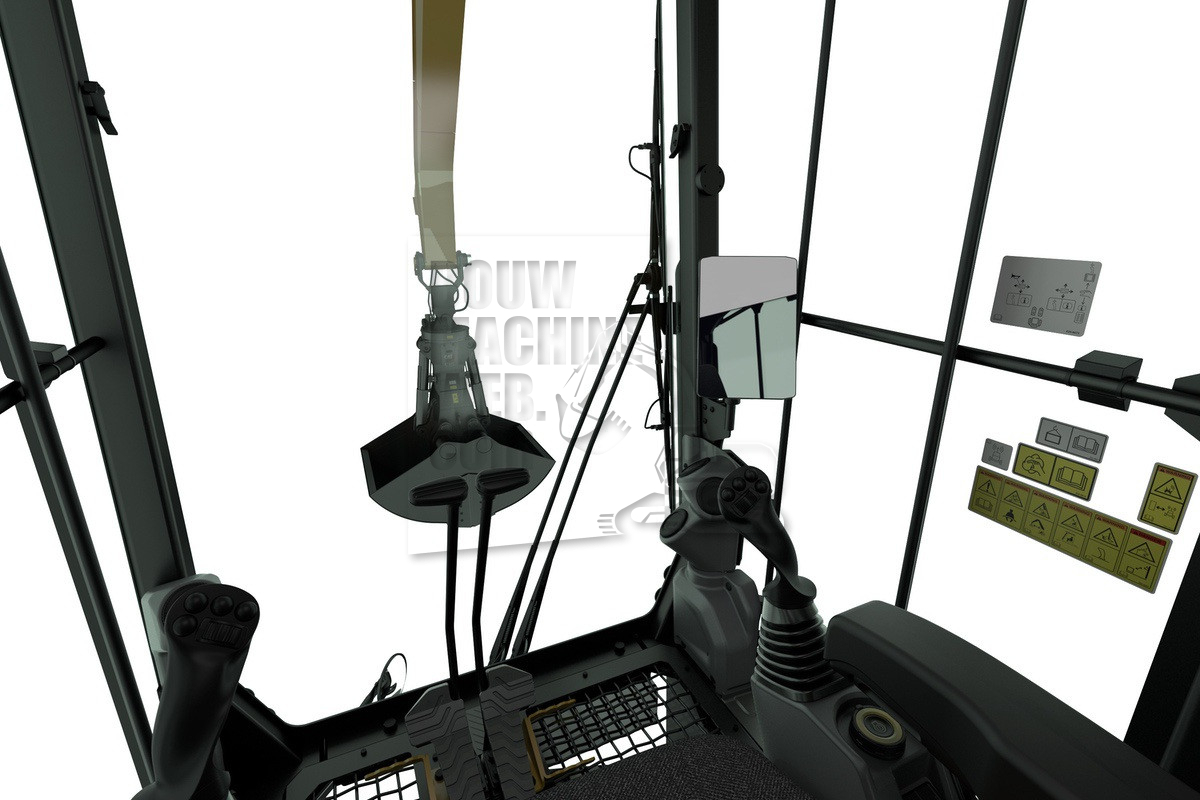 De standaard cabinevermijding helpt contact tussen het werktuig en de cabine te vermijden, wat de veiligheid tijdens het gebruik verhoogt en de levensduur van de machine verlengt. Automatische klimaatregeling zorgt voor een comfortabele bedrijfstemperatuur gedurende de hele dienst, en opbergvakken bevinden zich onder en achter de stoel, plus in de cabine en in de consoles om voldoende uitrusting op te bergen. Machinisten kunnen persoonlijke apparaten aansluiten via de USB-poorten en Bluetooth-technologie van de standaard radio.