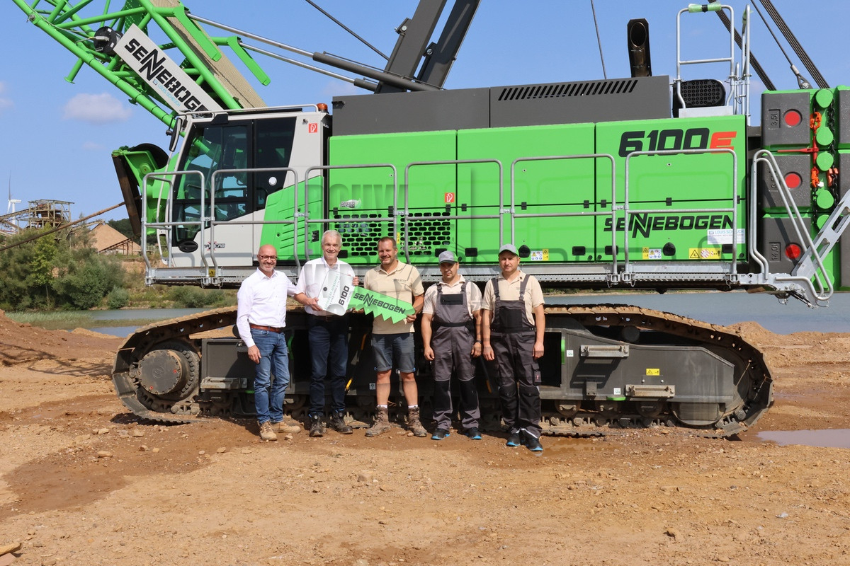 De grindgroeve Bokshorn in Porta Westfalica, Duitsland, is een familiebedrijf met een lange traditie. De grindfabriek, opgericht in 1882 – inmiddels gevestigd op de derde locatie – produceert nog steeds jaarlijks zo'n 150.000 ton zand en grind voor de betonindustrie, waaronder prefab- en straatstenenfabrieken. Toen de huidige directeur Henrik Franke in 2024 het bedrijf van zijn vader overnam, werd het winningsgebied van de grindgroeve uitgebreid. Om voorbereid te zijn op de nieuwe situatie, moest ook het machinepark tijdig worden gemoderniseerd. Het oude elektrische, maar onflexibele schraapsysteem werd daarom vervangen door de 100-tons Sennebogen 6100 HD draadkraan.