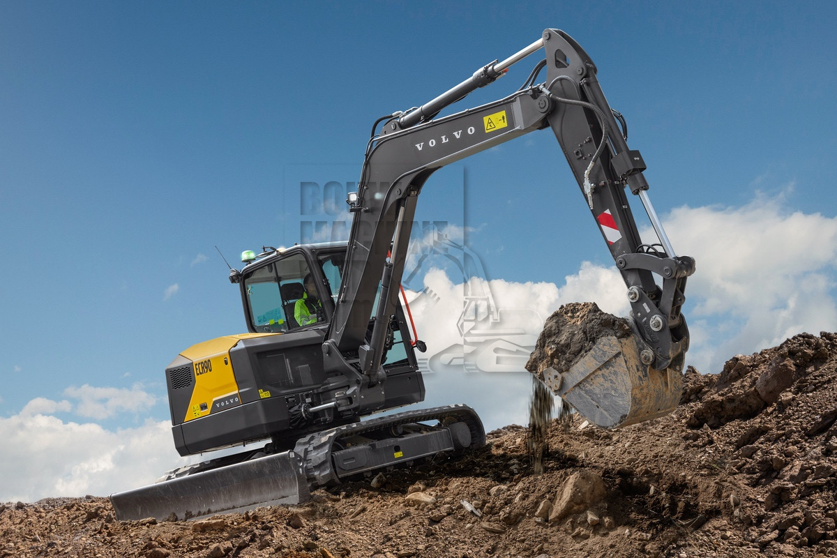 De 9-tons ECR90 is een krachtige graafmachine met korte zwenkradius, gebouwd om te concurreren met grotere modellen, maar in een formaat dat ideaal is voor krappe, beperkte werkterreinen. Vergeleken met de ECR88 omvatten de upgrades: