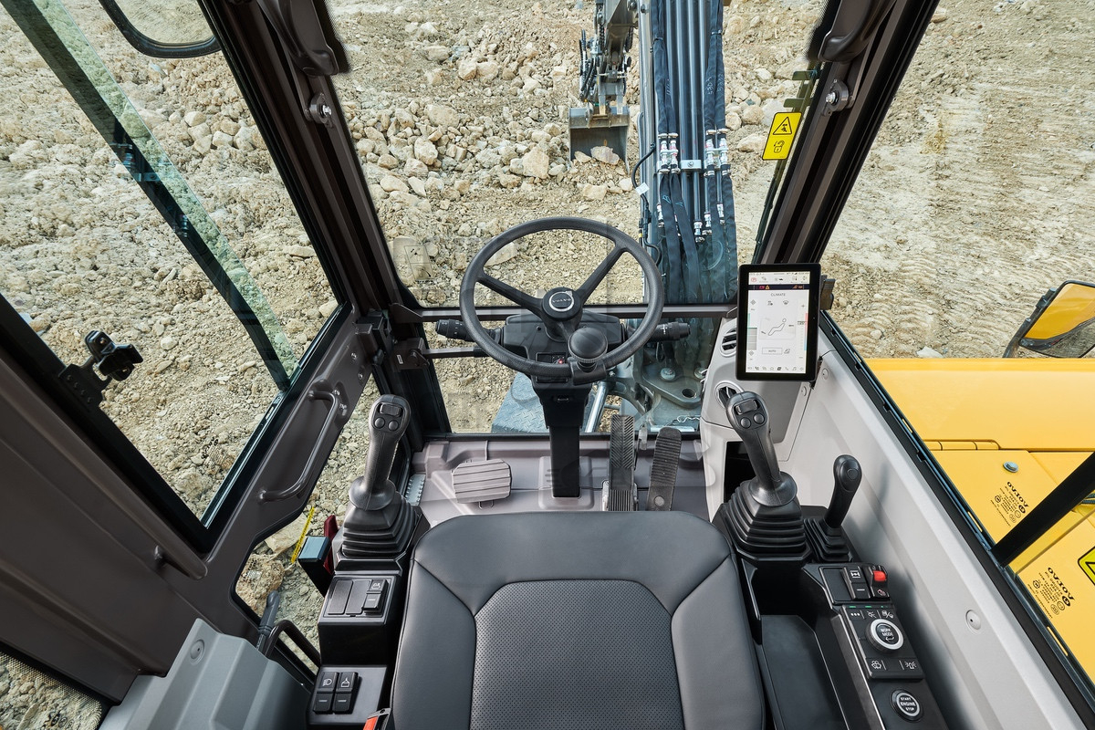 Machinisten zullen genieten van de ruime cabine van de nieuwe graafmachine, die ongeveer 20% groter is dan de meeste cabines van graafmachines met een korte zwenkradius. De cabine is stil, comfortabel en ondersteunt de productiviteit met upgrades zoals een groter Volvo Co-Pilot-display met een hogere resolutie, meer mogelijkheden om machine-instellingen aan te passen en verbeterde verwarmings- en koelprestaties. Moderne gemakken zoals Bluetooth-connectiviteit, draadloos opladen van telefoons en een verwarmings-/koelcompartiment voor eten en drinken zorgen voor tevredenheid bij de gebruiker.