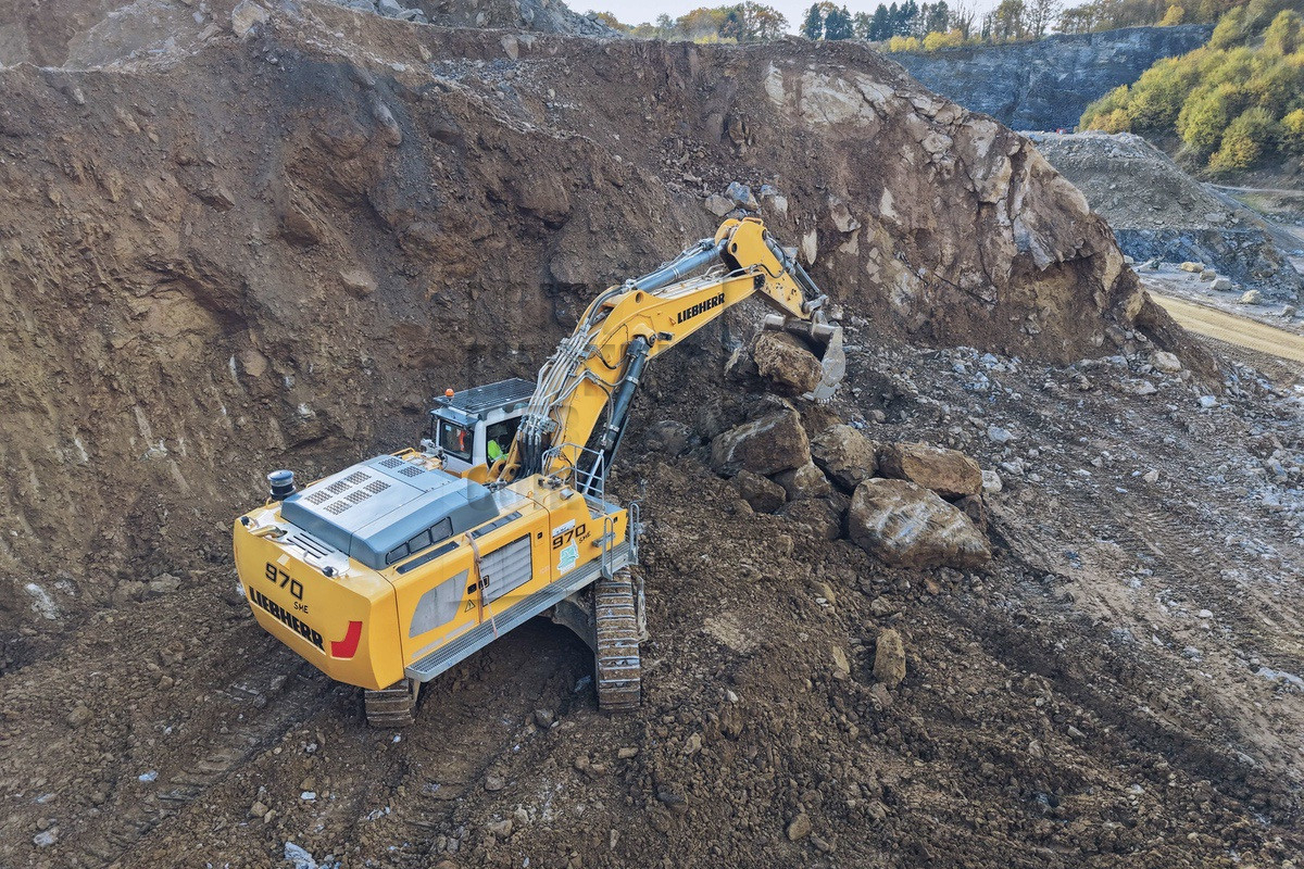 Een Liebherr R 970 SME rupsgraafmachine is ook in gebruik in de steengroeve en vormt een aanvulling op het reeds uitgebreide Liebherr-wagenpark. "We hebben in totaal zo'n vijftien machines in gebruik, waaronder zeven rupsgraafmachines, vijf mobiele graafmachines en twee wielladers. We hadden al in 2016 een van de eerste XPower-machines in gebruik. Brandstofefficiëntie is voor ons een belangrijk argument, maar het is net zo belangrijk om te kunnen vertrouwen op een Europese fabrikant met een innovatief en breed gediversifieerd productaanbod", benadrukt Frédéric Mathieu, algemeen directeur van Mathieu SA.