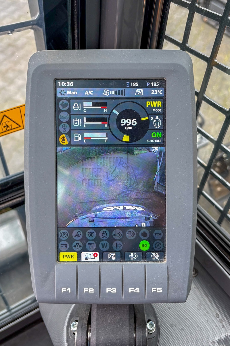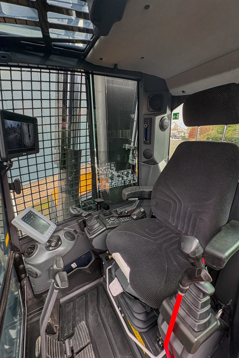 De machine is zeer doordacht, naast een camera onder de lepelsteel, is er ook een onder de giek gemonteerd, waardoor de machinist op een separaat scherm uitstekend zicht heeft op zijn werk. Dit wordt nog eens verbeterd door de 30 graden te kantelen cabine. Deze is voorzien van een comfortabele stoel, waardoor langdurig werken geen probleem vormt.