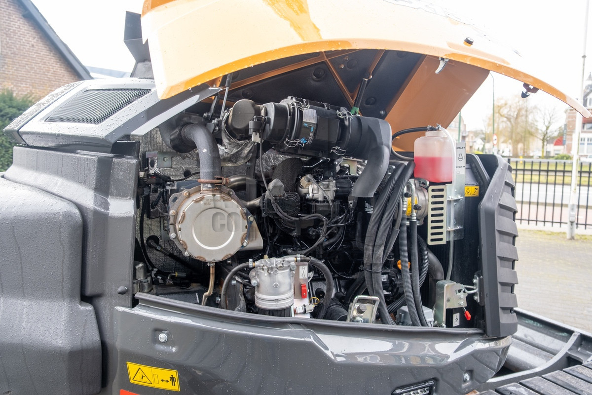 De machine is dan ook direct inzetbaar, er hoeft niks op of aangebouwd te worden na transport. Hij is zelfs te transporteren compleet met sloop-sorteergrijper. Met de rubberpads op de stalenrupsen kan de machine ook over straatwerk of asfalt rijden.
