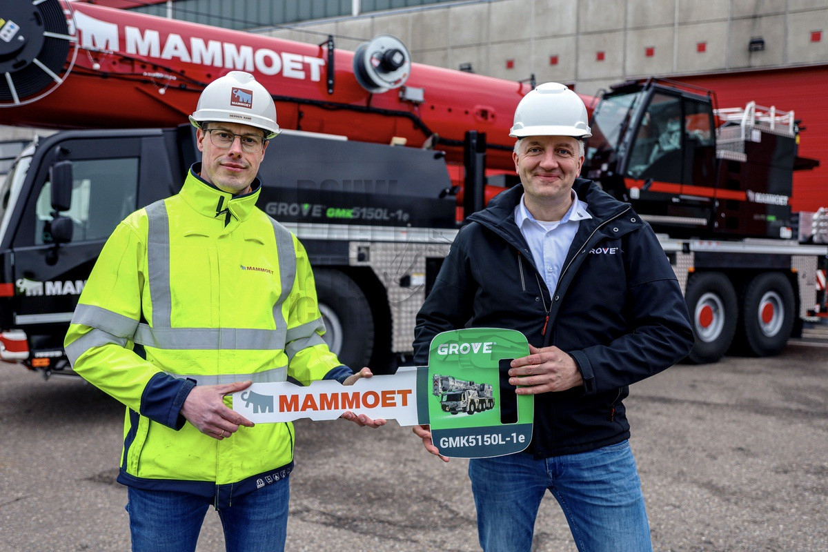 Mammoet heeft de eerste 150 tons Grove plug-in hybride terreinkraan, de GMK5150L-1e, in ontvangst genomen. De overdracht van de nieuwe Grove GMK5150L-1e vond plaats in Breda, Nederland, bij de Nederlandse verkoop- en servicevestiging van Manitowoc.