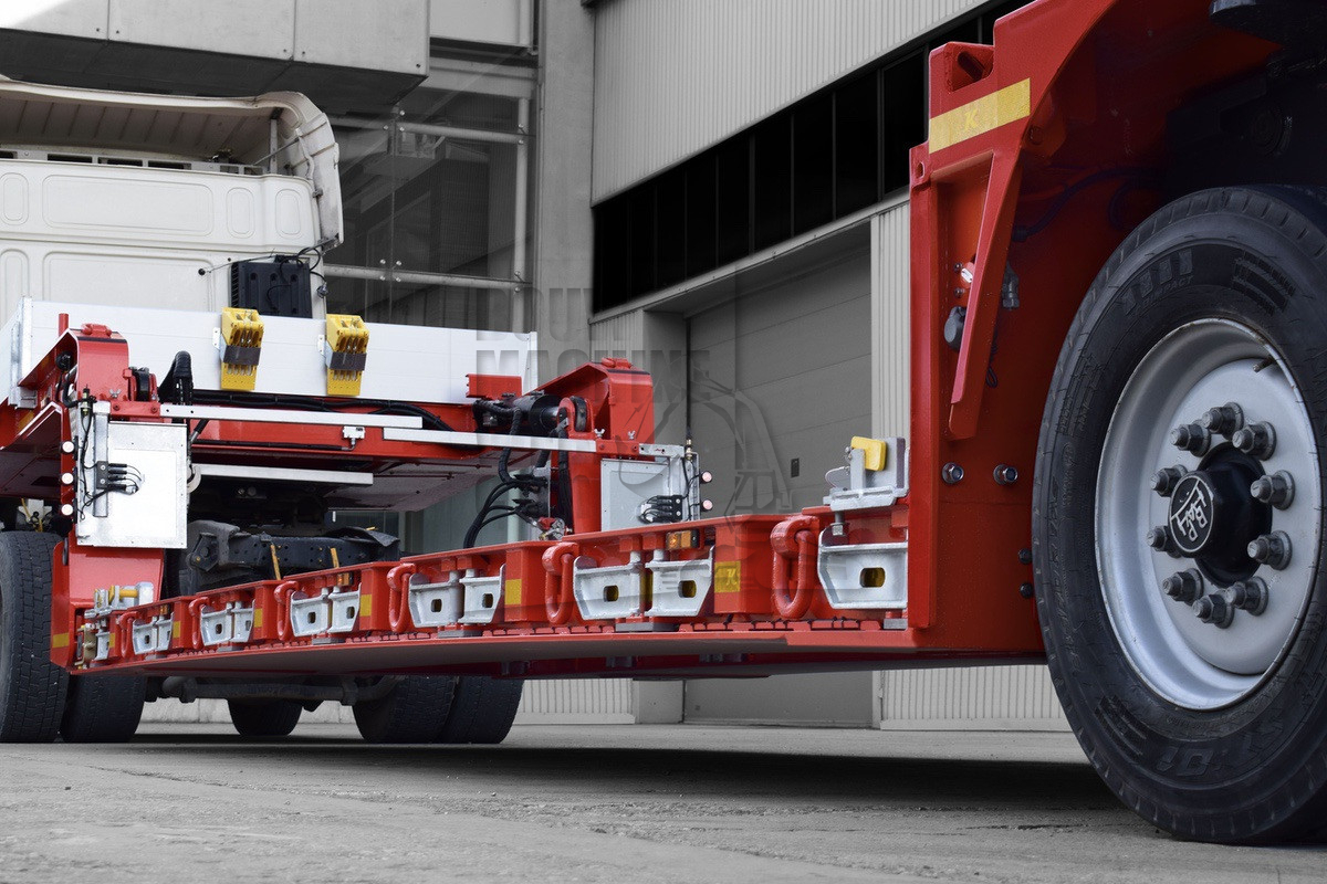 Daarnaast beschikt de pendelas‑dieplader standaard over losse rongen en twistlocks. Optioneel zijn zes paar afneembare, in de vloer geïntegreerde sjorogen van 13,4 ton leverbaar. Met deze uitgebreide uitrusting garandeert Kässbohrer uitstekende zekering van uiteenlopende zware en exceptionele ladingen, met behoud van stabiel, veilig en regelgeving‑conform transport.