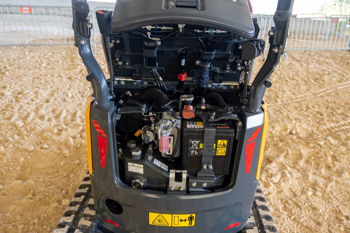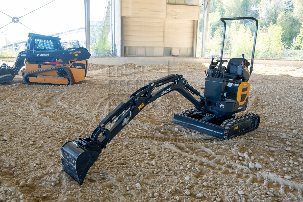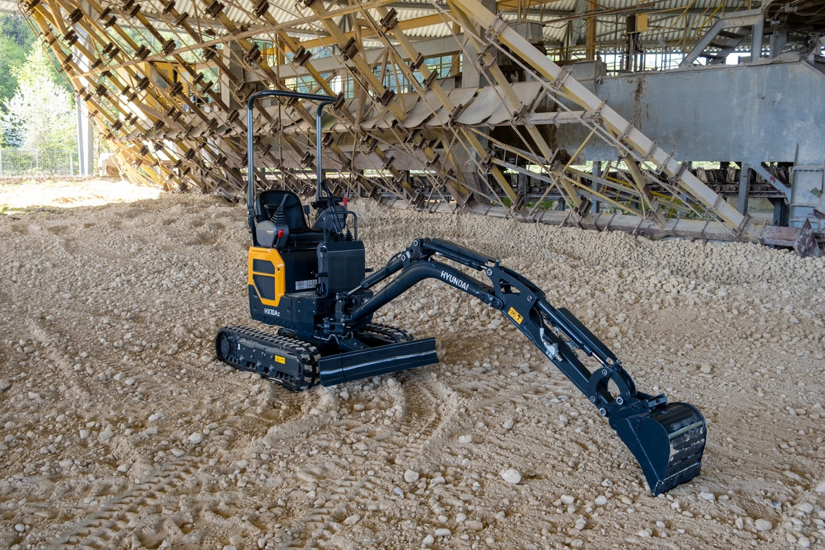 Tot voorkort gebruikte Hyundai vele jaren de 1000 kg graafmachine van het Oostenrijkse Wacker Neuson. Bij de nieuwe generatie komt deze machine uit de eigen stal, namelijk van Develon. De bijna 1200 kg zware HX10A beschikt over een hydraulisch verbreedbare onderwagen, waardoor hij een transportbreedte heeft van 73 cm en een stabiele werkbreedte van 111 cm. Een 7,6 kW (10,4 pk) sterke Stage 5 dieselmotor zorgt voor de aandrijving van de twee hydraulische pompen met elk een opbrengst van maximaal 10,4 liter/min. De buisvormige monogiek, met hefcilinder aan de achterzijde, en 89 cm lange lepelsteel kunnen een maximale graafdiepte bereiken van 221 cm en een reikwijdte van 340 cm. Deze zijn standaard uitgerust met één extra hydraulische functie.