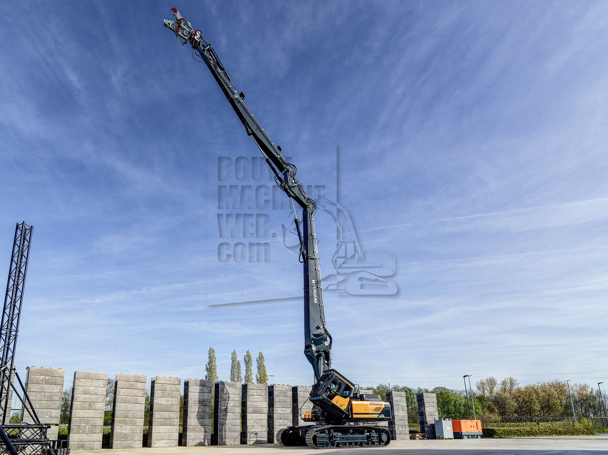 Samen met STC in Coevorden kan Hyundai nu op basis van de 52 ton zware HX520A een rupsgraafmachine met afkoppelbare lange sloopgiek aanbieden. Op Nederlandse sloopspecialist heeft e machine voorzien van een hydraulisch verbreedbare onderwagen, kantelcabine en een lange sloopgiek met een maximale penhoogte van 27 meter. De lange sloopgiek kan ook worden gewisseld voor een korte graafgiek.